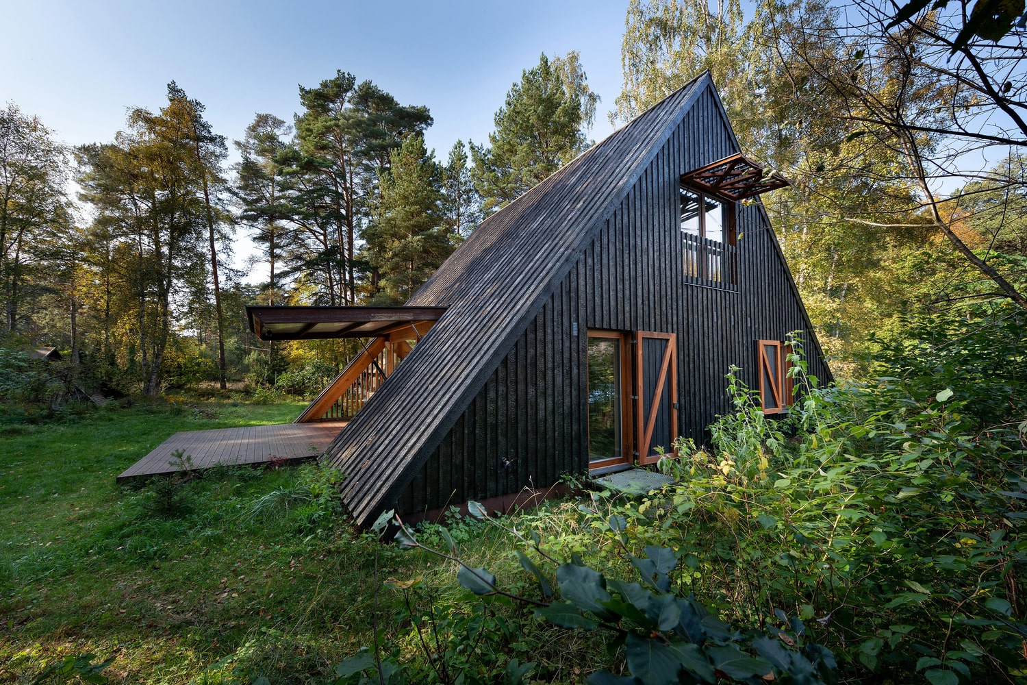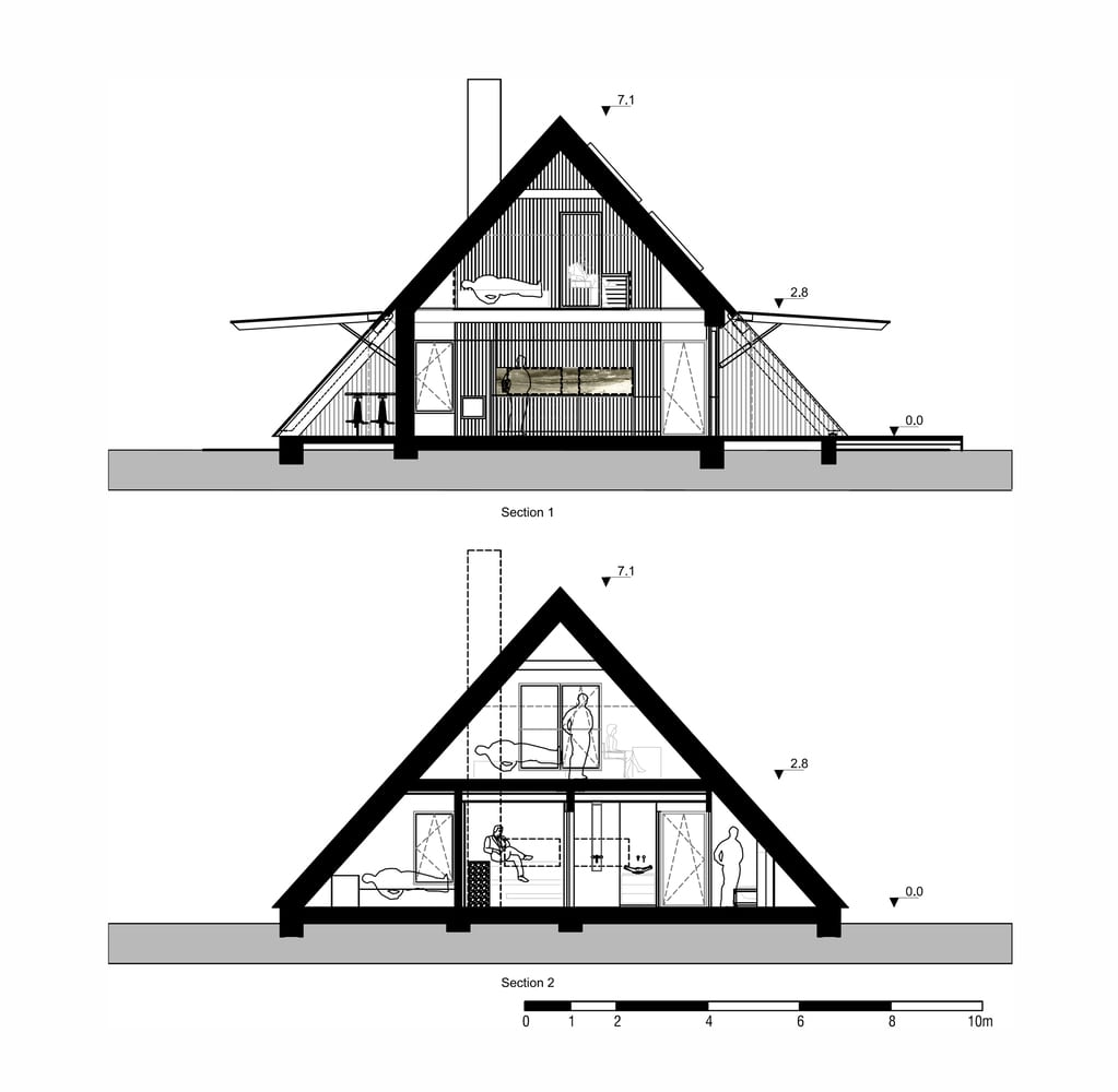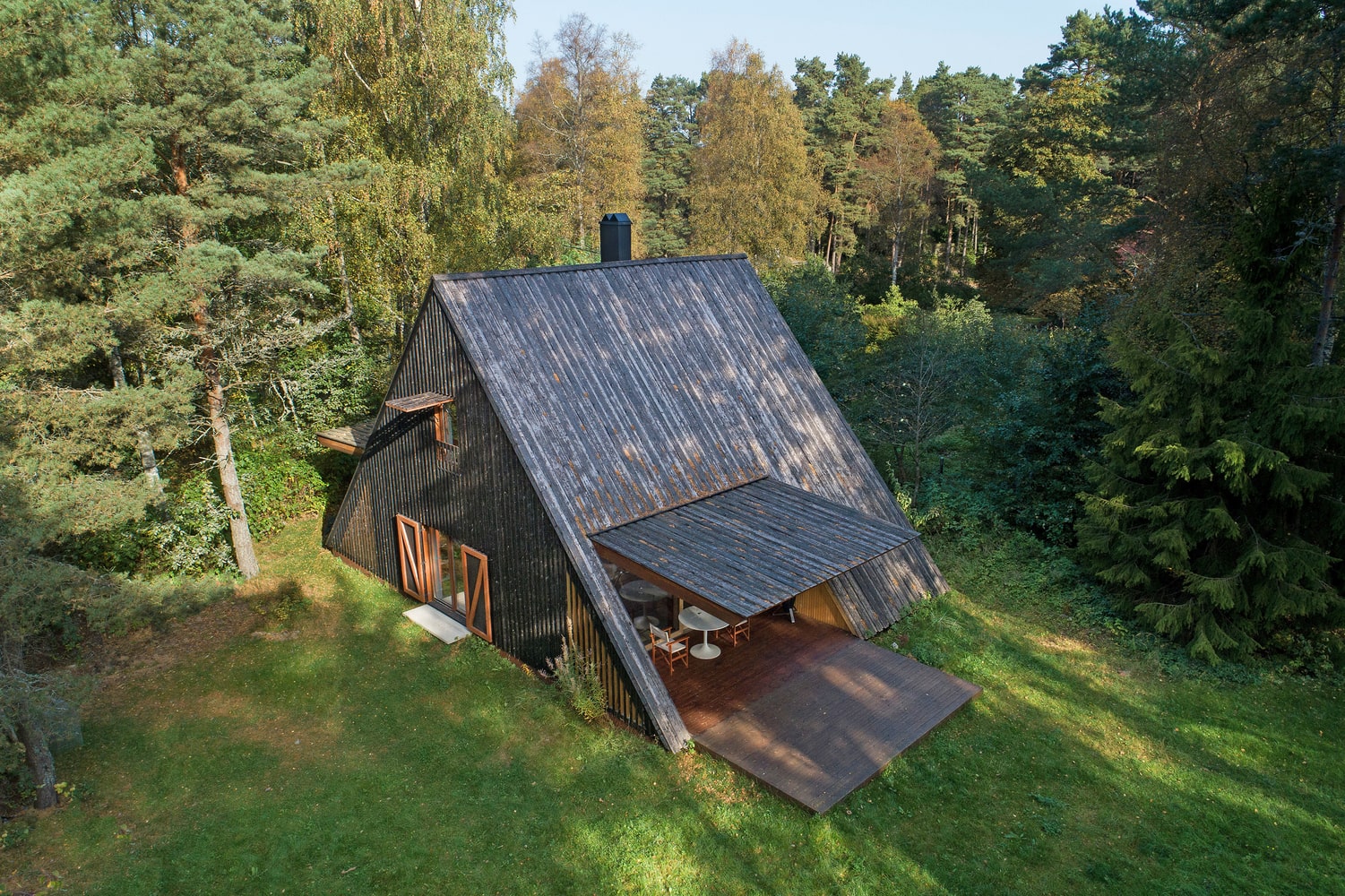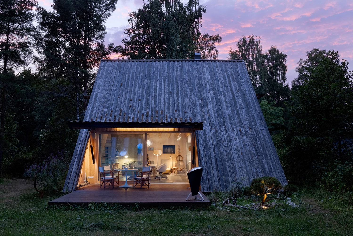 Domek letniskowy w Vääna-Jõesuu, około 35 km od Tallina, jest jak archetyp domu tipi. Minimalistyczna forma przypominająca namiot, która była często stosowana w architekturze wiejskiej w latach 70., została uzupełniona elementami kinetycznymi, zmieniając lakoniczną bryłę we współczesny jasny i przewiewny domek letniskowy. Gdy w domku nikt nie przebywa, wtedy jest pozamykany ze wszystkich stron i staje się niezauważalny.