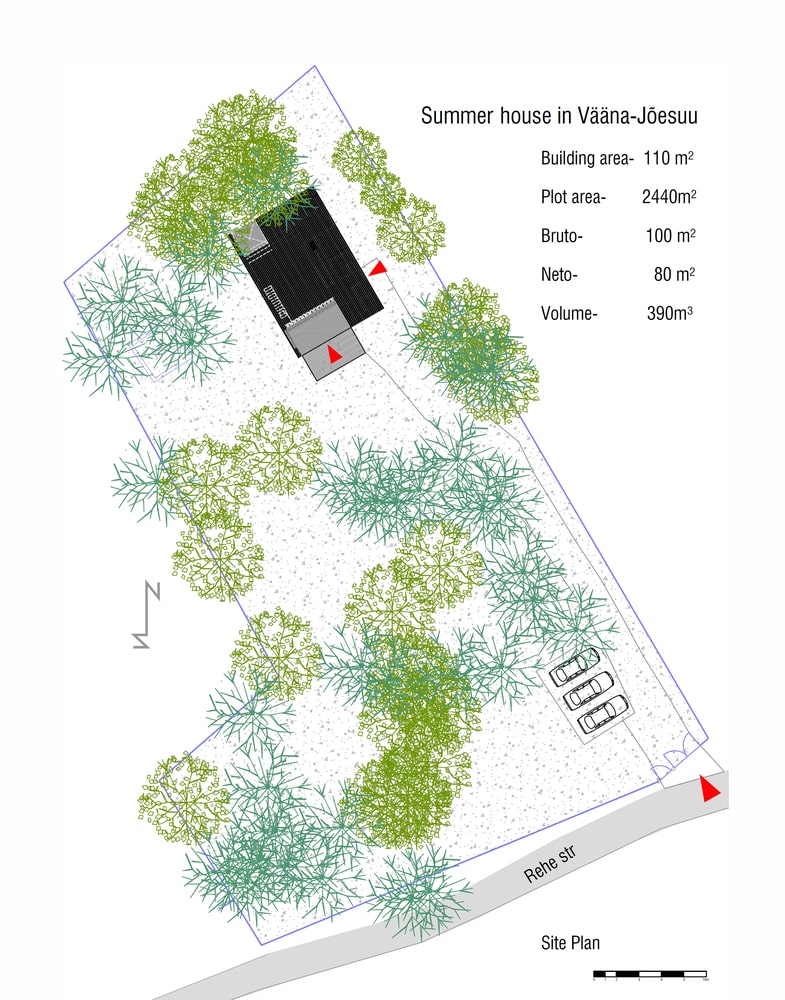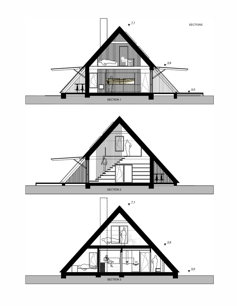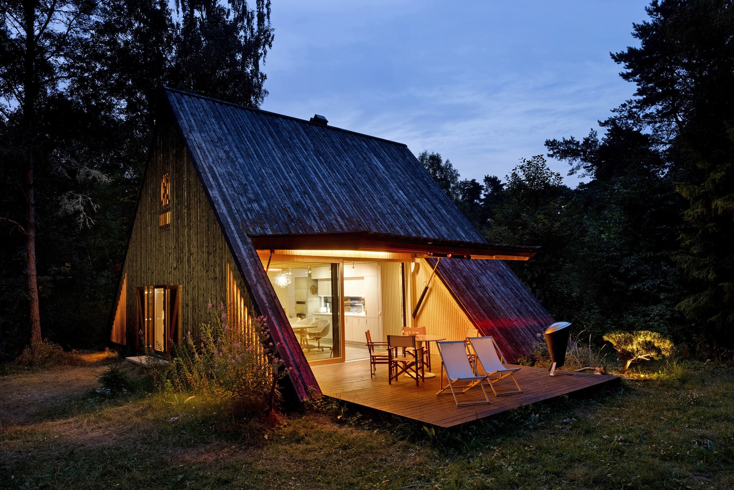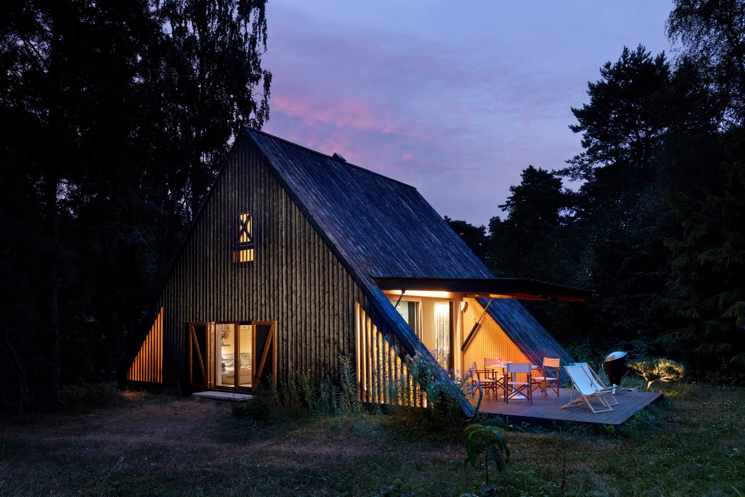 Domek letniskowy w Vääna-Jõesuu, około 35 km od Tallina, jest jak archetyp domu tipi. Minimalistyczna forma przypominająca namiot, która była często stosowana w architekturze wiejskiej w latach 70., została uzupełniona elementami kinetycznymi, zmieniając lakoniczną bryłę we współczesny jasny i przewiewny domek letniskowy. Gdy w domku nikt nie przebywa, wtedy jest pozamykany ze wszystkich stron i staje się niezauważalny.