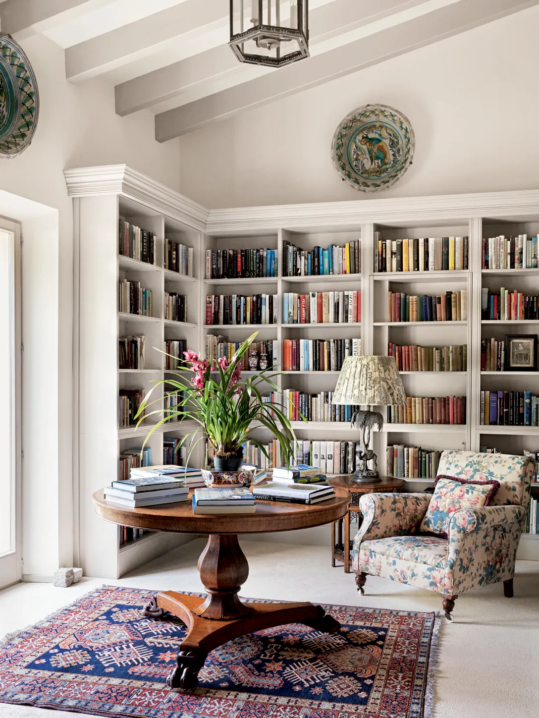 Dom miał zaledwie trzy lata, kiedy ona i Geoff go kupili, w rezultacie niewiele trzeba było w nim robić. Jedynym ustępstwem było zaprojektowanie i dodanie biblioteki w dawnej sypialni, z ukrytymi drzwiami prowadzącymi do łazienki. Stale powiększająca się kolekcja książek tej pary szybko okazała się zbyt duża, by pomieścić ją tylko w jednym pokoju. Do biblioteki dodano zatem drugą sekcję w dawnym przedpokoju prowadzącym do holu. Małżeństwo z wielką rozwagą przerobili i ożywili zarówno swoje życie, jak i meble, aby dostosować się do życia na śródziemnomorskiej wyspie. Rezultatem jest oda do ich miłości do Majorki.