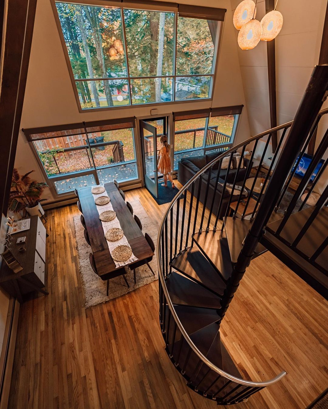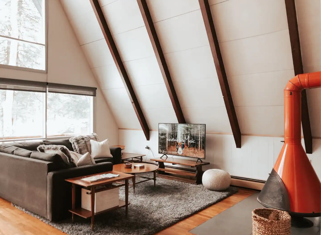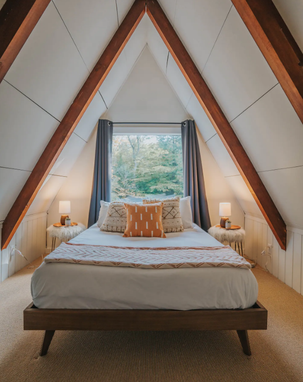 Domek Catskills A-Frame wyposażono w bezprzewodowy dostęp do Internetu, w pełni wyposażoną kuchnię, pralnię z łazienką oraz kominek retro, który zapewni ciepło w chłodne wieczory.