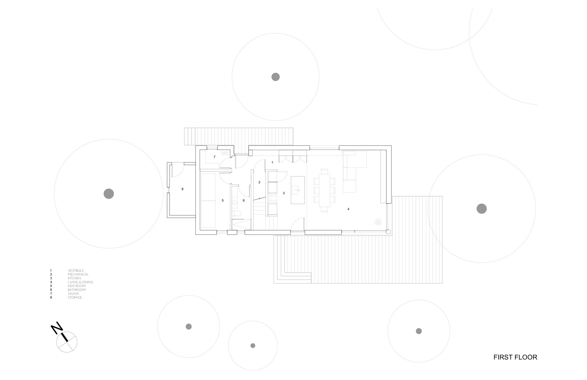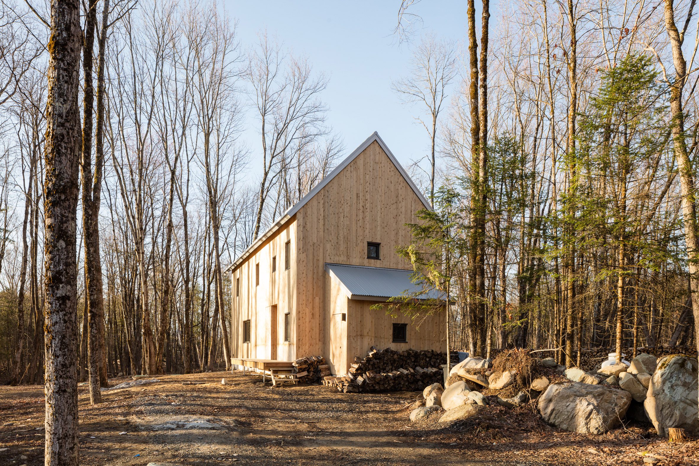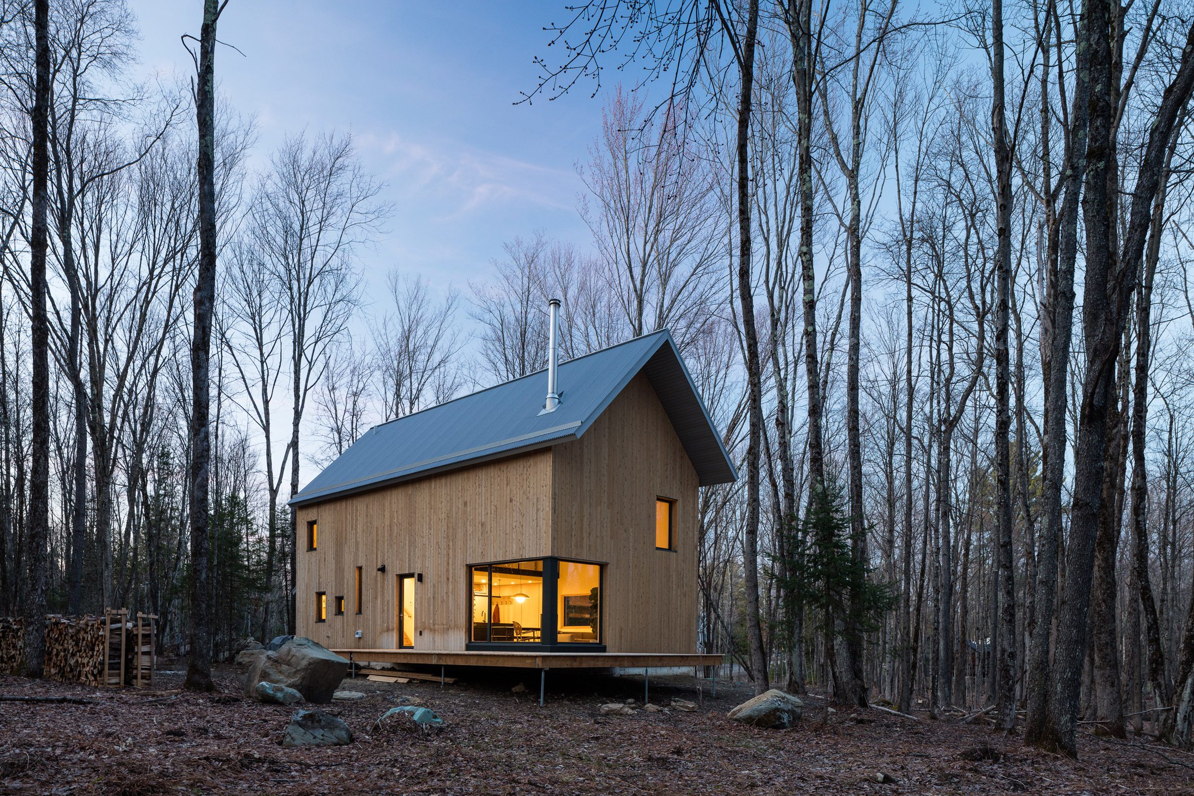 Pomimo swojej wielkości, architekt umieścił w domu trzy sypialnie, dwie łazienki… a nawet saunę! Nazwany Chalet Pic-Bois (Woodpecker Cottage) obiekt położony jest w pobliżu jeziora Brome, popularnego miejsca do uprawiania narciarstwa i wędrówek poza Montrealem. Wejście do pokrytej cedrem nowoczesnej STODOŁY znajduje się od strony północnej, gdzie zadaszony portyk chroni szklane drzwi pełnej wysokości.