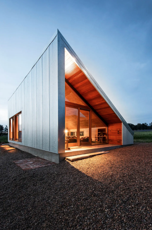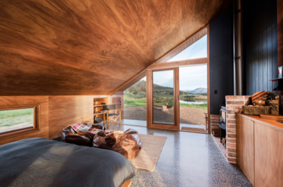 Na powierzchni zaledwie 40 m², minimalną powierzchnię chaty Gawthorne’a zaprojektowano tak, aby jak najlepiej wykorzystać wnętrza na planie otwartym i wprowadzić w nie krajobraz.