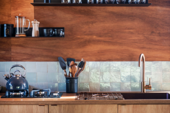 Ogólna paleta materiałów jest ciepła i zachęcająca, z naturalnym czarnym drewnem, szeroko stosowanym wewnątrz i na zewnątrz. Chata Gawthorne’a nosi imię historycznego właściciela posiadłości Benjamina Gawthorne’a.