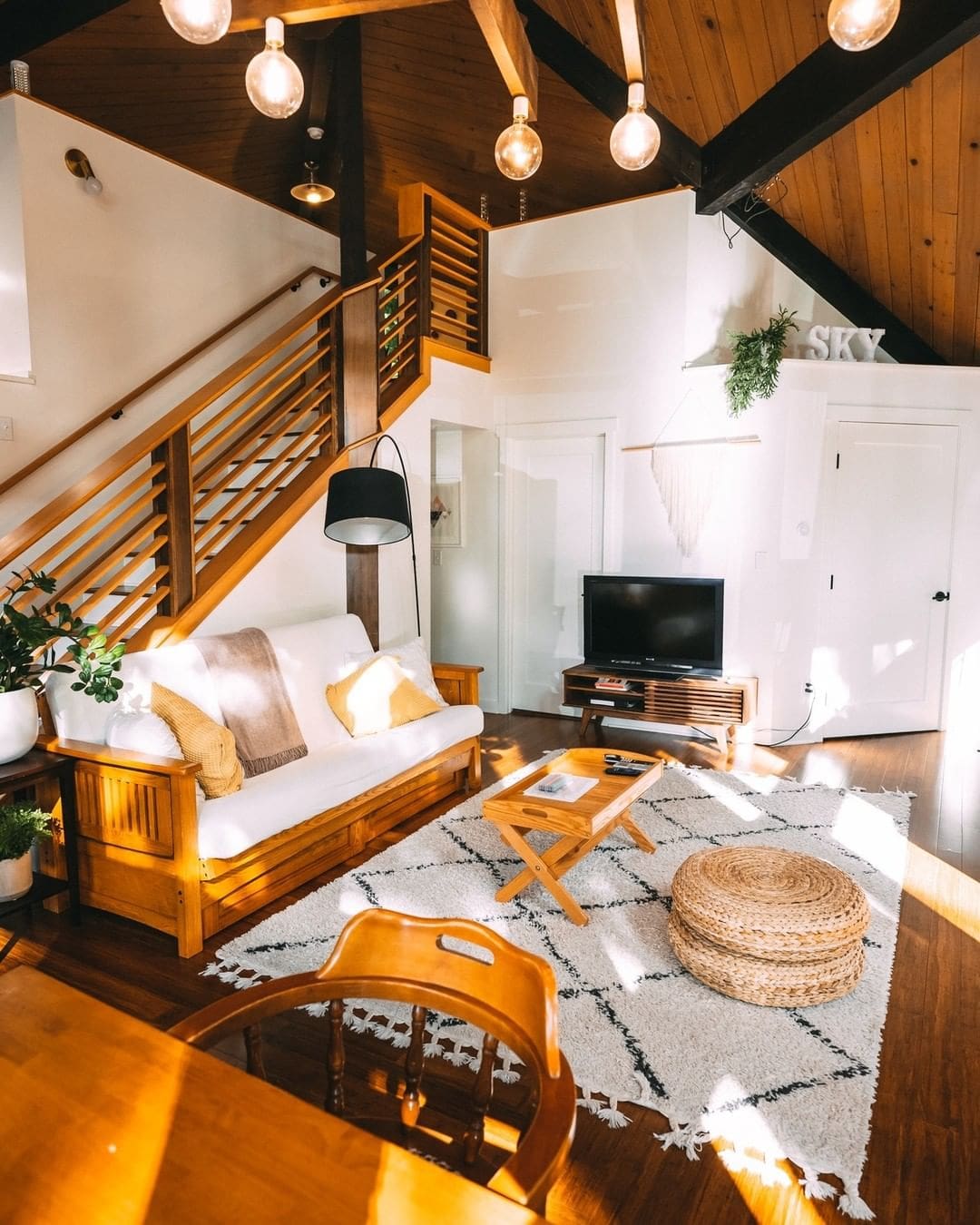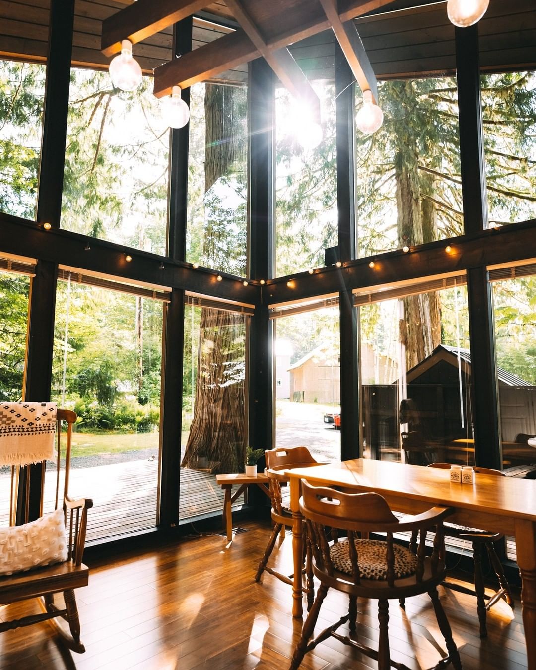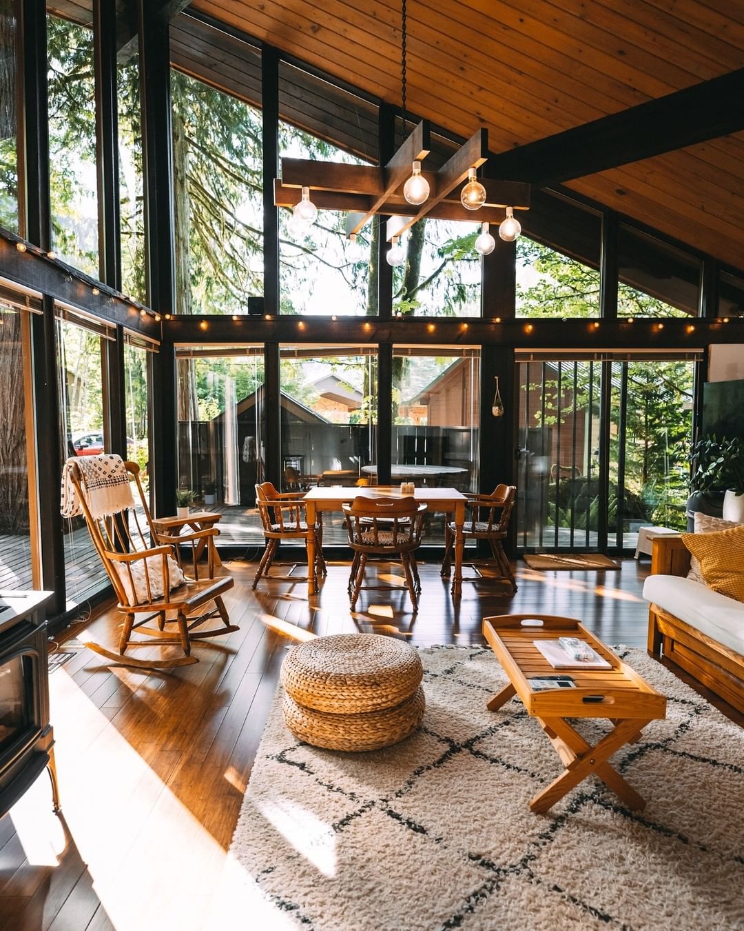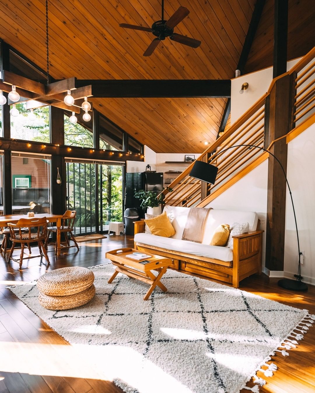 nowoczesna Stodoła swoim charakterem wpisuje się w design z połowy stulecia – między innymi dramatycznymi wręcz kątami, sam dach od pierwszego spojrzenia fascynuje. Okna umiejscowione od podłogi do sufitu wprowadzają naturę i naturalne światło do wnętrza Sky Cabin. Ze świetlnego punktu widzenia, obiekt jest idealny dla influencerów wszelkiej maści.