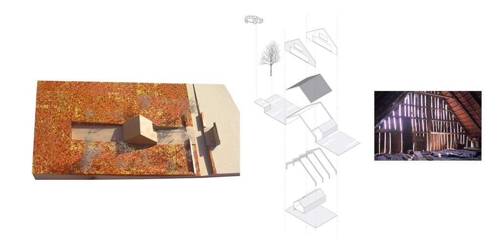 Charakterystykę dawnych gospodarstw i STODÓŁ przełożono na nowe typologie mieszkaniowe. Gospodarstwo „Halle” stanowi punkt wyjścia dla kształtu charakterystycznego budynku, gdzie dach dominuje nad fasadą. STODOŁA wznosząca się ze zboża i trawy mieści mieszkanie zanurzone w krajobrazie. Krajobraz ten pełni funkcję ogromnego ogrodu, który ze względu na swoje położenie i naturalną morfologię jest dostępny zarówno prywatnie, jak i publicznie.