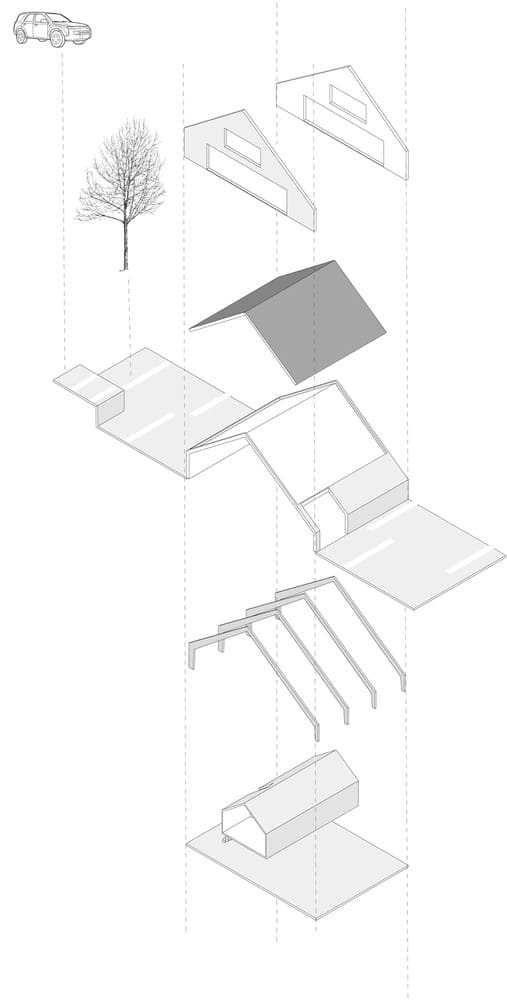 Mieszkania w krajobrazie tworzą ciągłą powierzchnię, na której dach i grunt stają się jednym i tym samym, działając jako pas w krajobrazie, zacierając granice między publicznym i prywatnym. Infrastruktura wzmacnia tę ideę.