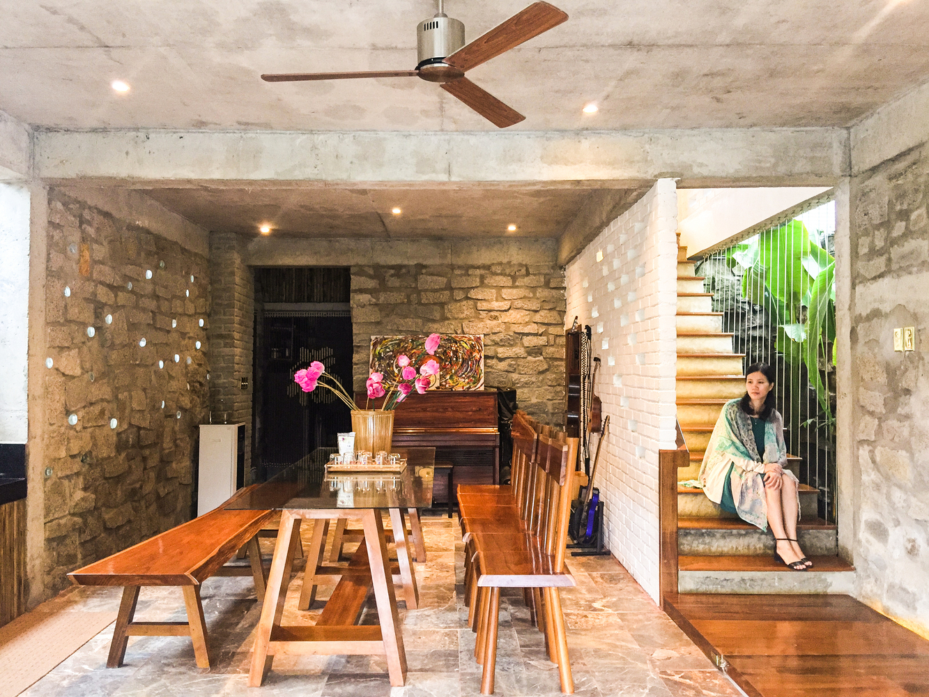 Hoa Phong House o powierzchni 400 m² stanowi manifest filozofii zrównoważonego projektowania, gdzie estetyka tworzy pełną harmonię z odpowiedzialnością środowiskową. Kolejną eko-cechę bryły widać w jednoczesnej minimalizacji indeksu emisji dwutlenku węgla. Przestrzeń dzienną zorganizowano w taki sposób, by usuwała granice między ludźmi i przyrodą, wnętrzem i krajobrazem zewnętrznym.