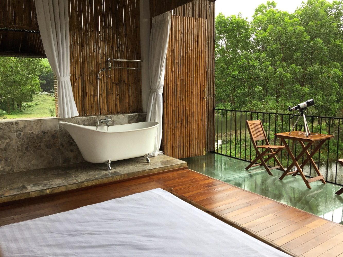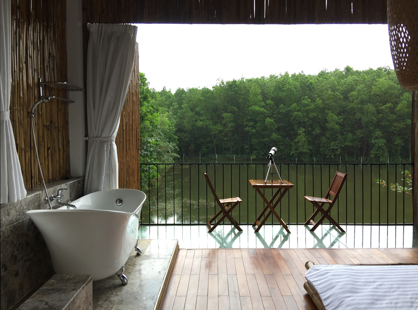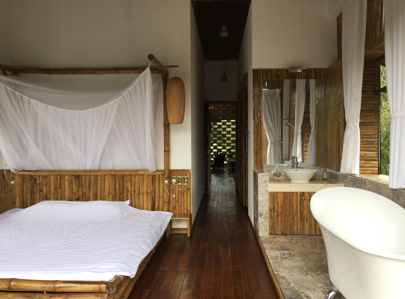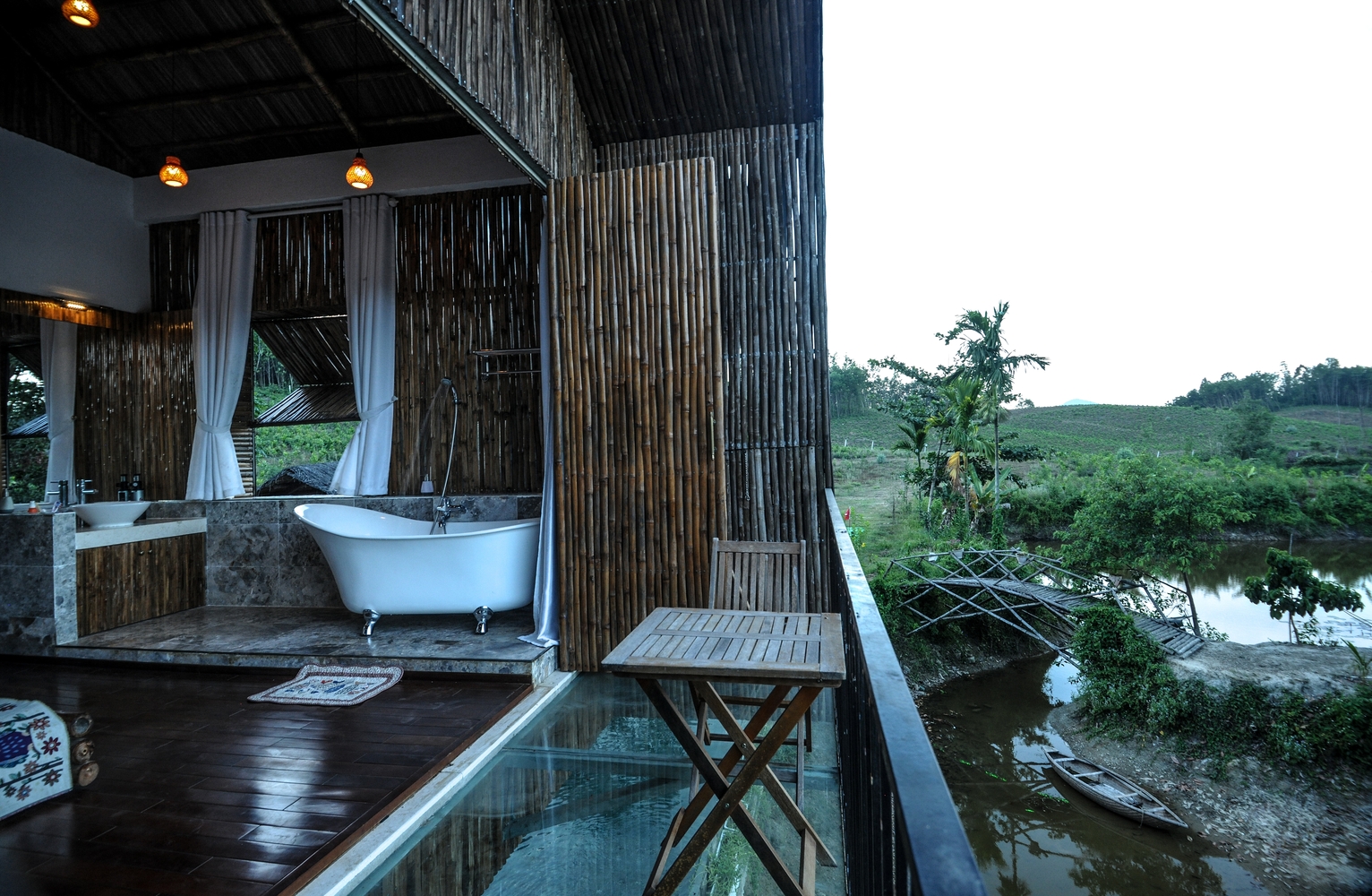 Budynek ma dwa poziomy, prosty kształt i unikatową bambusową elewację. Architekci doskonale wykorzystali też otoczenie domu, czyniąc z niego miejsce idealne na wypoczynek i zabawę w towarzystwie. Dom otaczają stare sady, ogrody warzywne, lasy oraz piaszczyste wydmy. Najbliższe otoczenie osłaniają tropikalne rośliny, w tym bananowce, tworzące scenerię spokojnego życia. W pełnej harmonii z przyrodą.