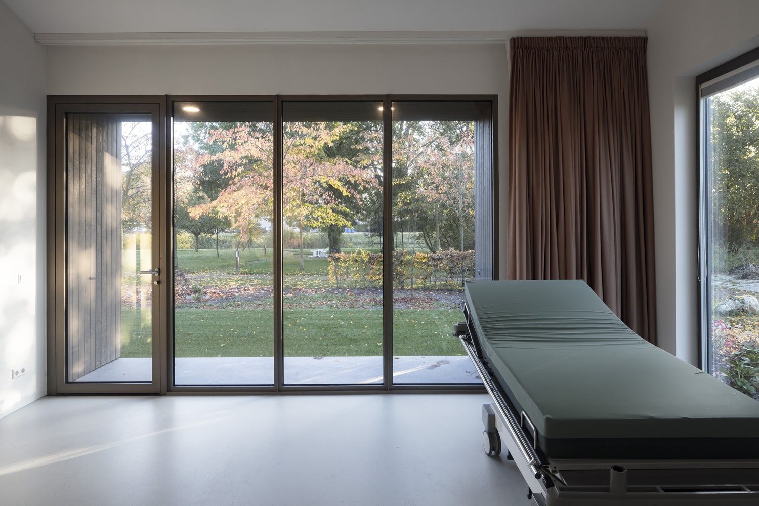 Każdy pokój posiada łazienkę, okna od ściany do ściany i prywatny zadaszony taras z widokiem na ogród gospodarstwa. Ten pokój to miejsce, w którym gość może się wyciszyć, aby znaleźć spokój i intymność. Pobyt w Hospicjum de Liefde to intensywny okres życia, w którym budynek oferuje znaczące środowisko do pożegnania i upamiętnienia w atrakcyjnym krajobrazie.
