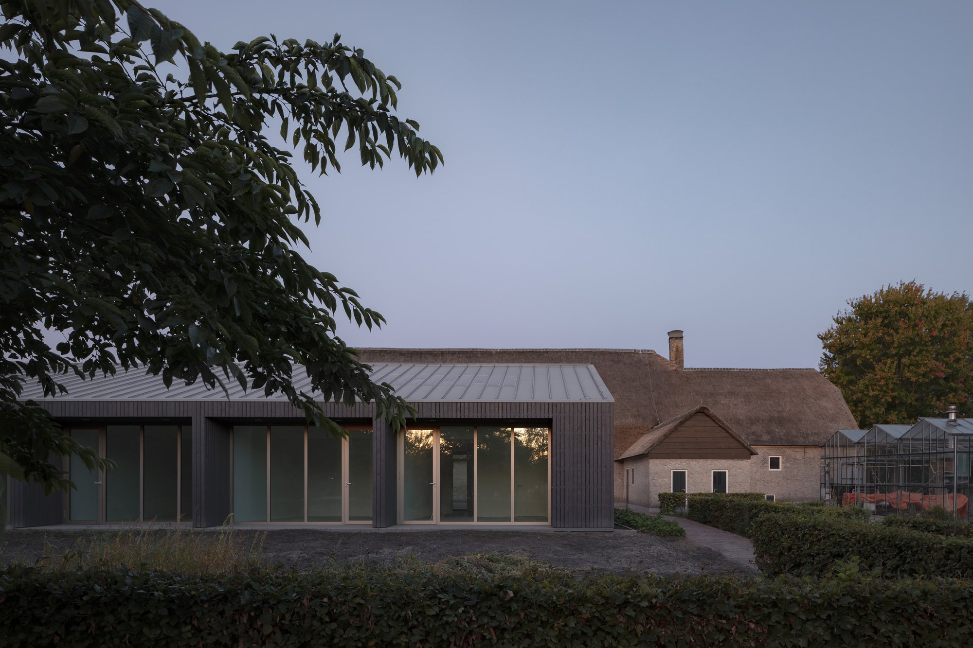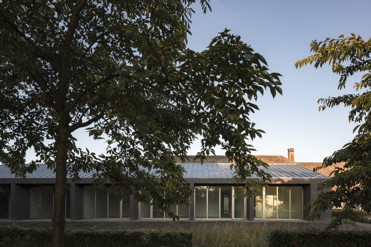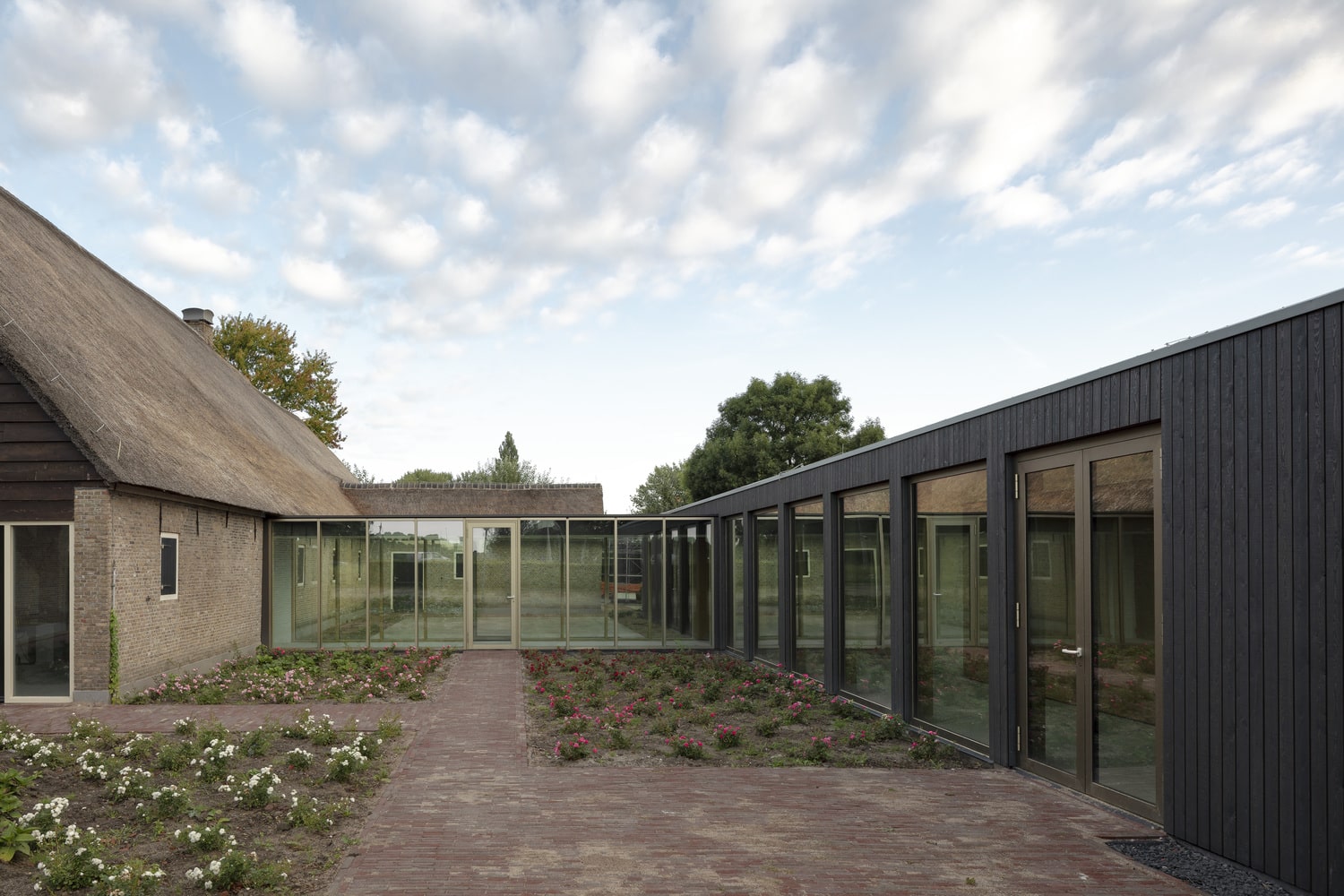 Dawna obora służy jako salon Hospicjum de Liefde. Na tej długiej przestrzeni wciąż widoczne są stare, monumentalne krokwie. Inne funkcje, takie jak kuchnia, recepcja, pokój gościnny i pokoje zespołowe sąsiadują bezpośrednio z tą przestrzenią. Pomieszczenie o podwójnej wysokości na czele farmy mieści „przestrzeń rytualną”, w której ludzie mogą się spotykać, aby pożegnać się i upamiętnić tradycję buddyjską.