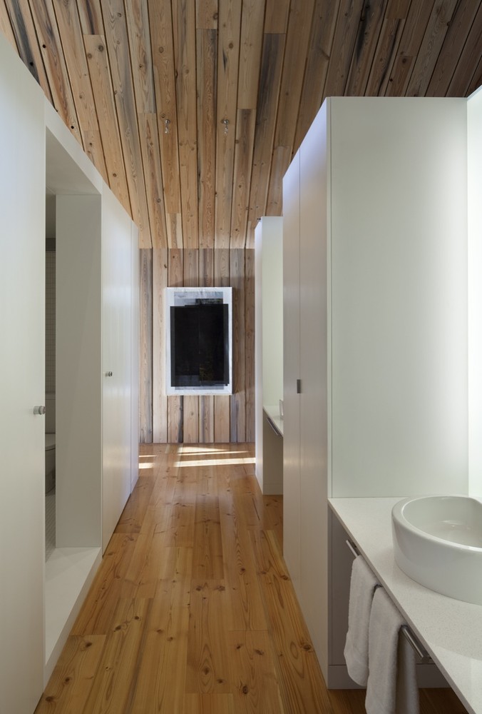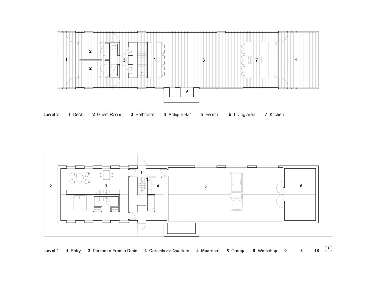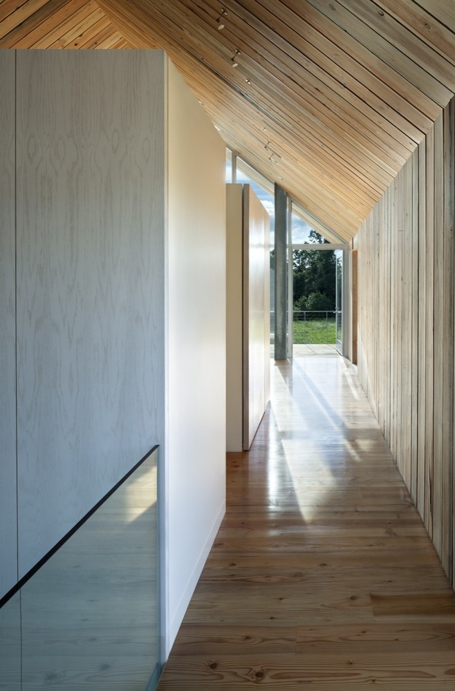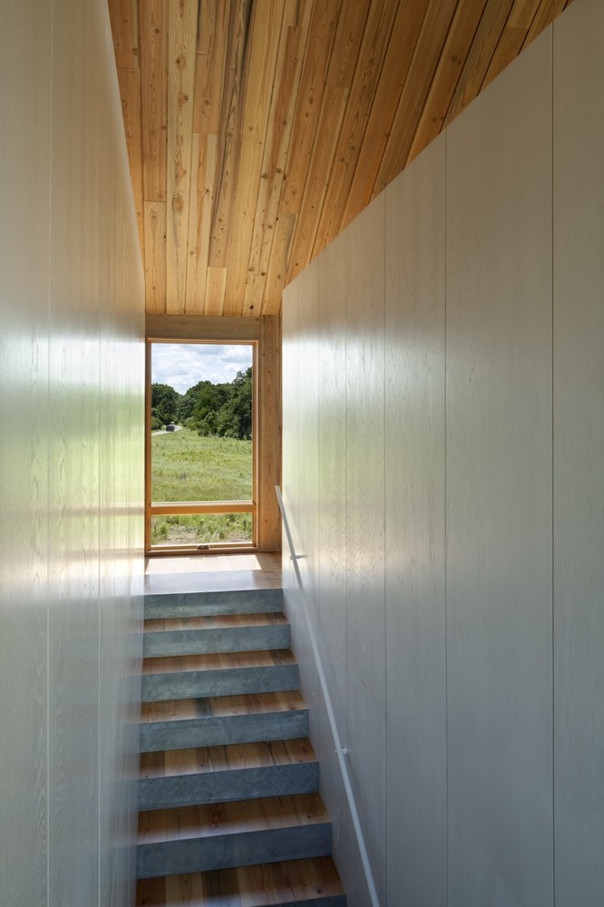 Budynek zorganizowano w taki sposób, aby osiągnąć maksymalną wydajność i minimalną ilość odpadów. Szczyt to ciągły układ kratownic nożycowych od wschodu do zachodu. Ściany są obramowane ośmiostopowymi kołkami, które nie wymagały cięcia. Standardowy szalunek betonowy wielokrotnego użytku tworzy dwustopowy moduł budynku. Drewniana okładzina jest skoordynowana z dwunożnym modułem wewnątrz i na zewnątrz; dzięki zastosowaniu strategii odwrotnej deski i łat okładzina przylega do modułu 8”, umożliwiając jednocześnie użycie standardowych desek 7 ¼. Przestrzeń jest zamknięta i zdefiniowana tak minimalnie, jak to możliwe, przy jednoczesnym zapewnieniu niezbędnej programowej separacji.