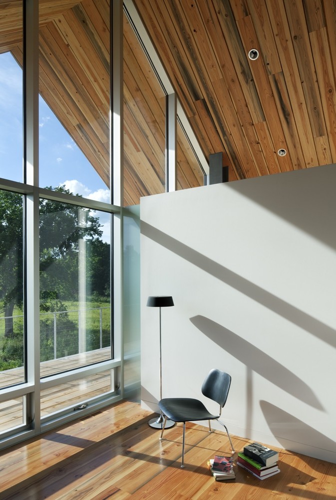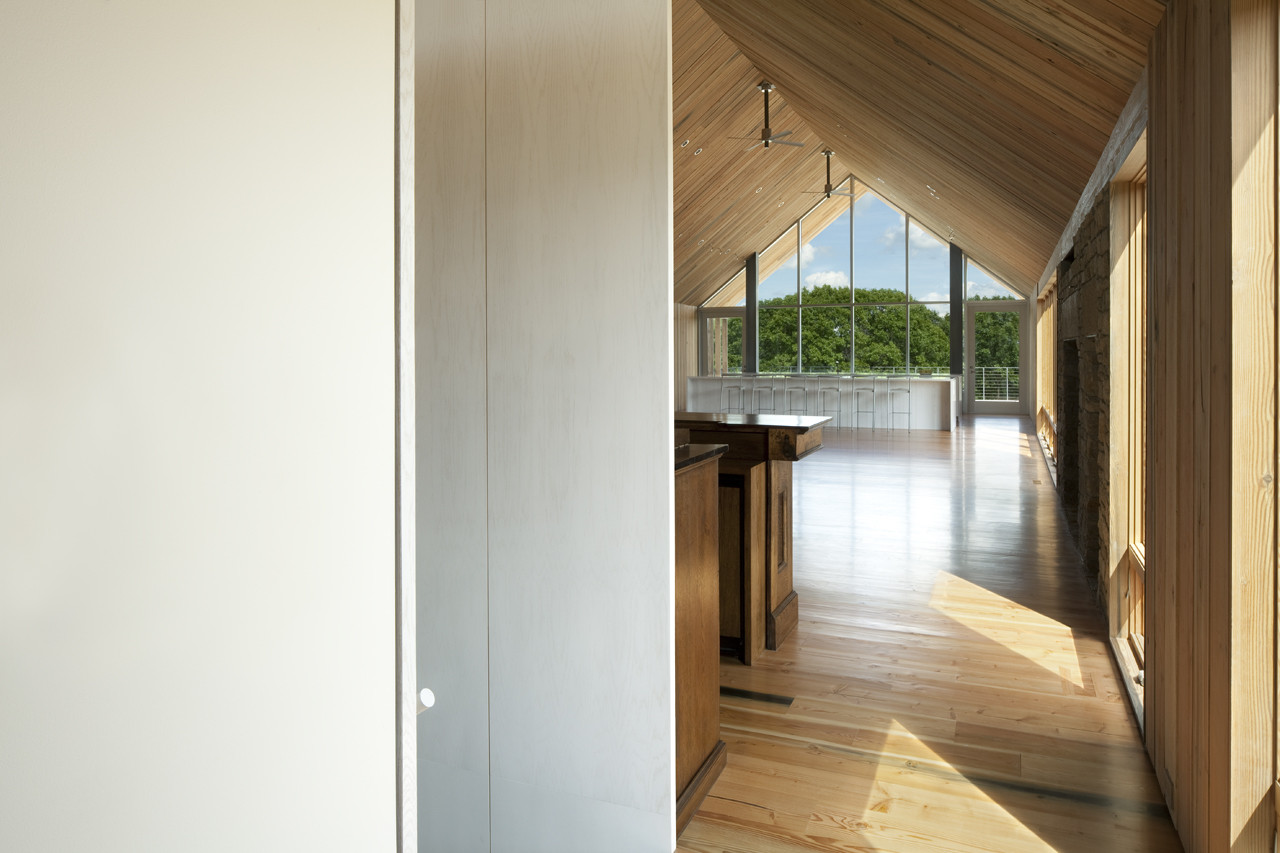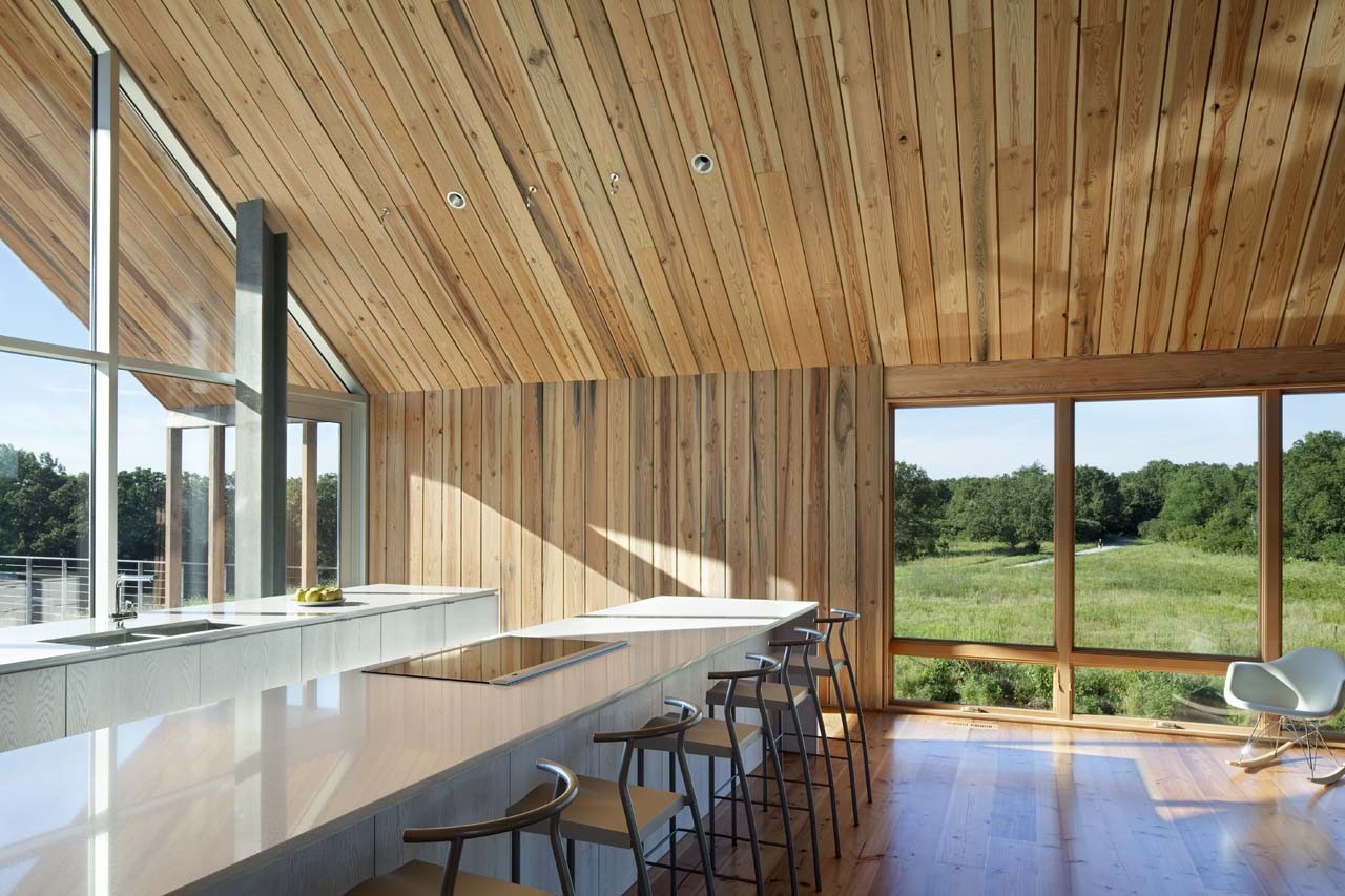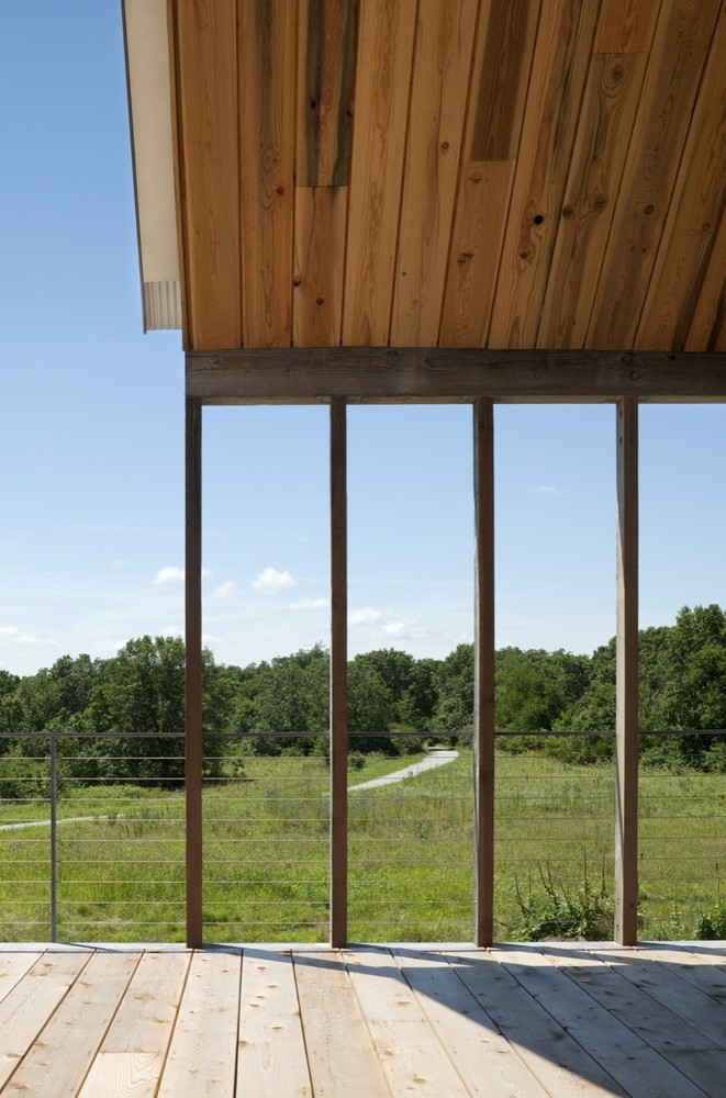 Do budynku można dojechać od południa dzięki żwirowemu podjazdowi, który przecina preriowe i leśne siedlisko. Ustronie znajduje się na istniejącej polanie i jest otoczone odrestaurowaną prerią, która może dorastać do obwodu budynku. Dzięki usytuowaniu na tej polanie, a także swojej formie i materiałowi, budynek odzwierciedla agrarne typologie regionu. nowoczesną STODOŁĘ wydłużono w kierunku wschodnio-zachodnim, aby zmaksymalizować kontrolę światła dziennego i podkreślić widoki na staw od wschodu i samotne drzewo od zachodu.