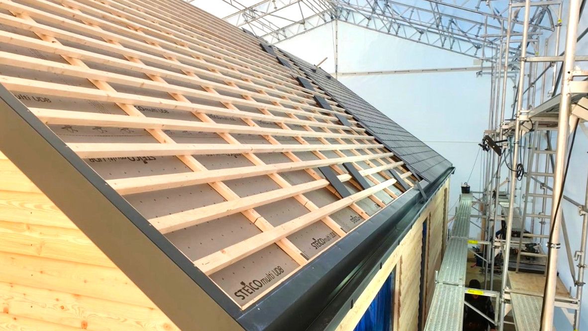 Precyzyjne ułożenie łat i kontrłat ma kluczowe znaczenie dla trwałości i jakości dachu. Na naszej budowie zastosowaliśmy łaty z C24 – suche i heblowane.