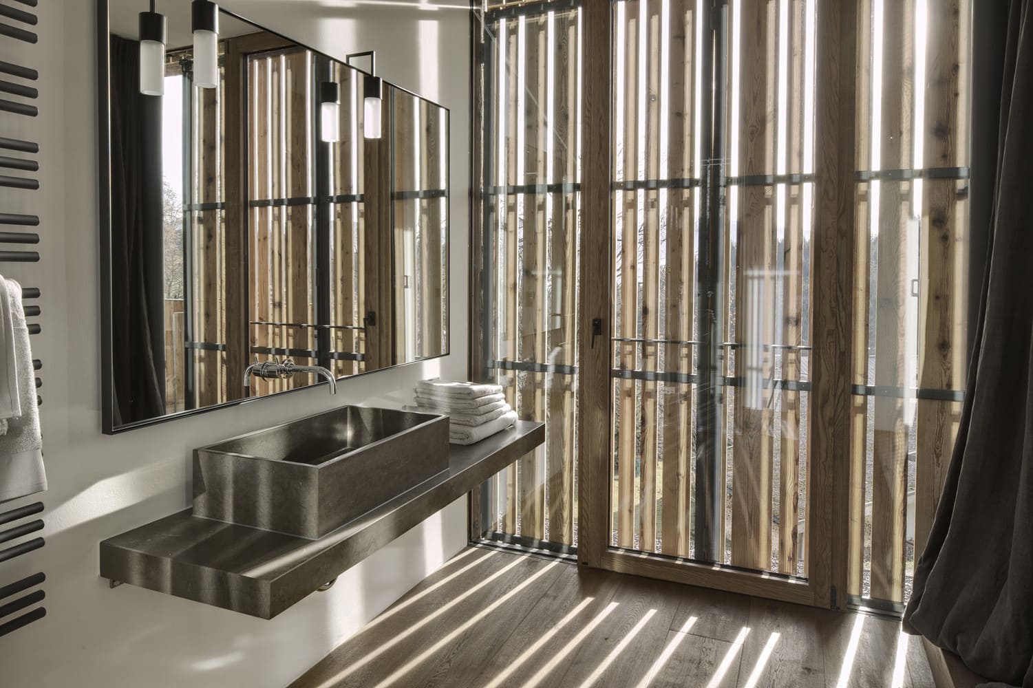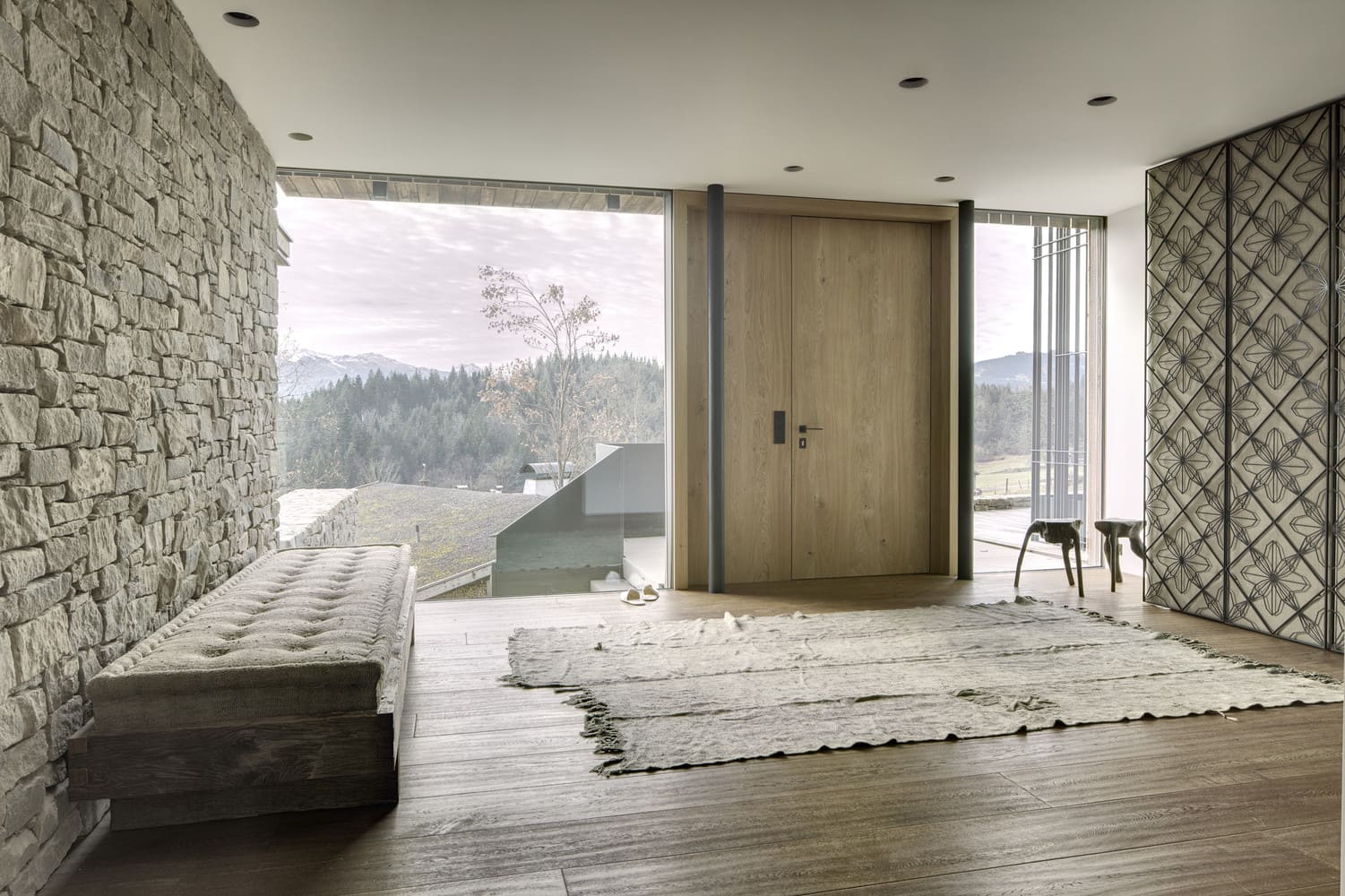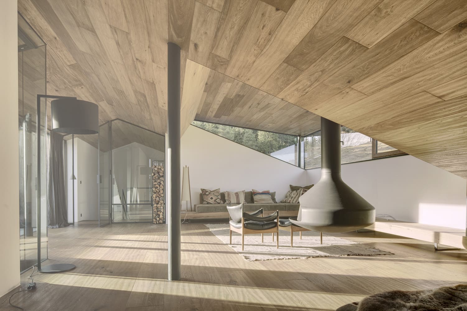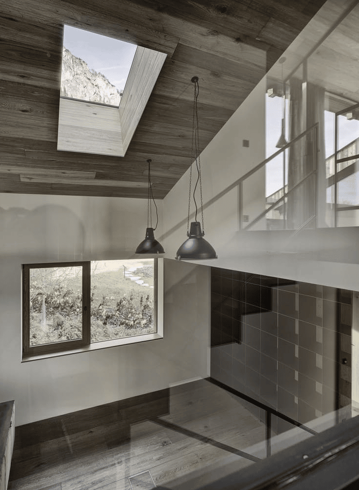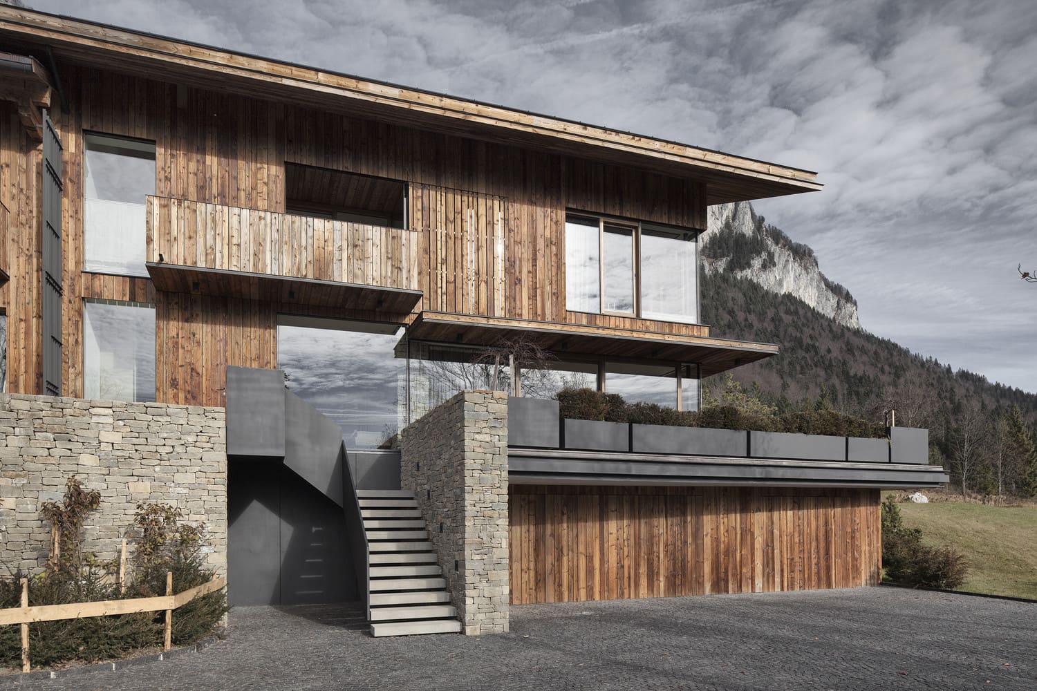 „Ostrożnie rozważyliśmy atuty topologiczne tego miejsca, z Hinterkaisergebirge na północy, Kitzbühler Horn na południu, Loferer Steinbergen na wschodzie, a także otaczającą zabudowę gospodarczą. Dom komunikuje się z dominującym pasmem górskim, a każdy widok przypomina malowidło. Decyzja o wykorzystaniu archaicznych materiałów została podjęta dość świadomie, nawiązując do okolicznych zagród. Klient chciał, aby atmosfera była jasna i przewiewna, ale także przytulna” – tłumaczą architekci.