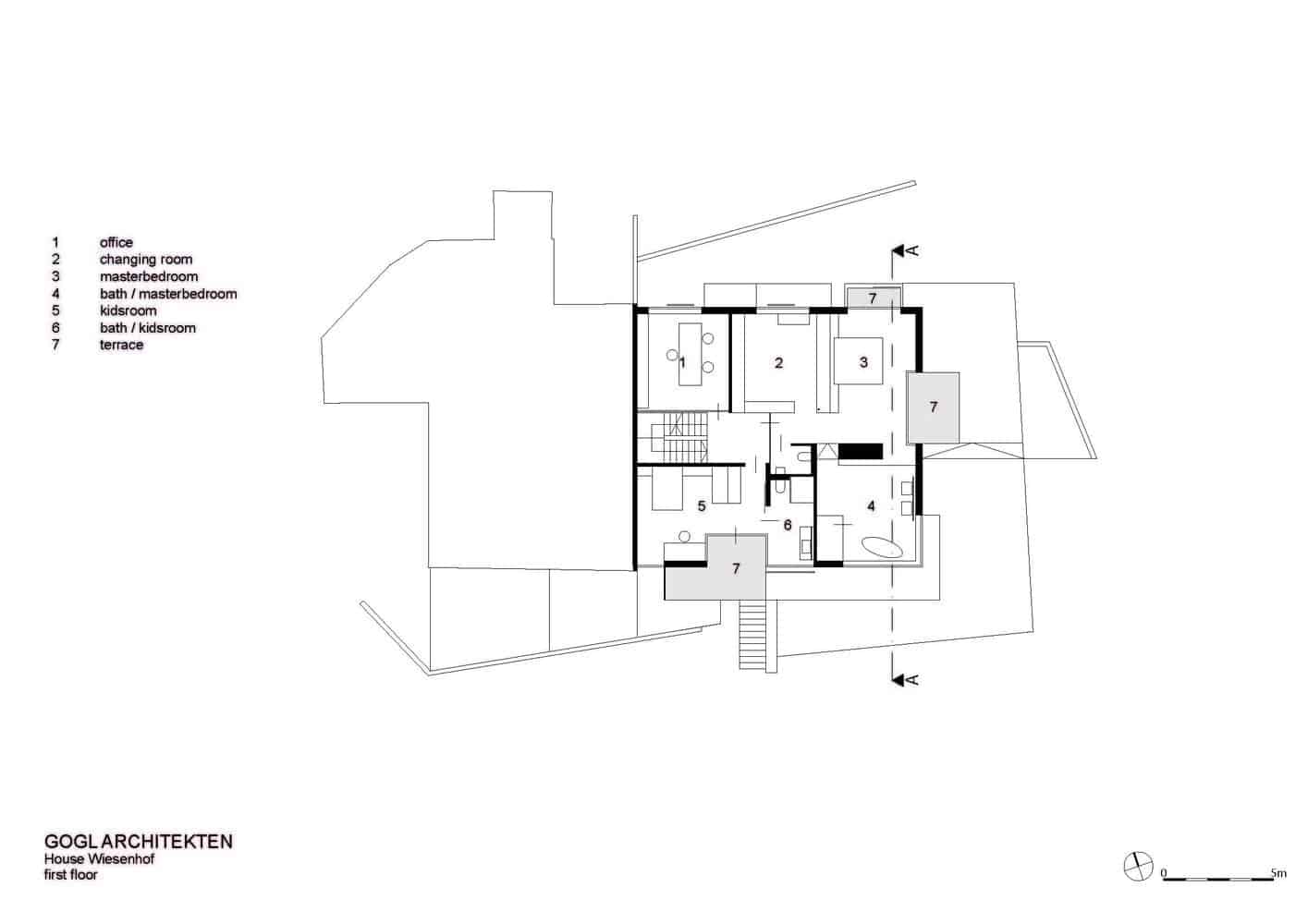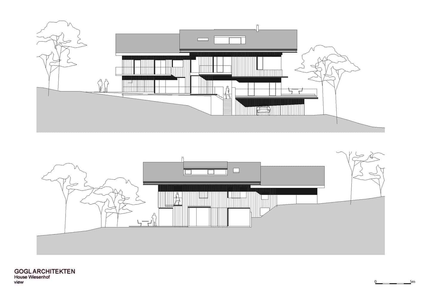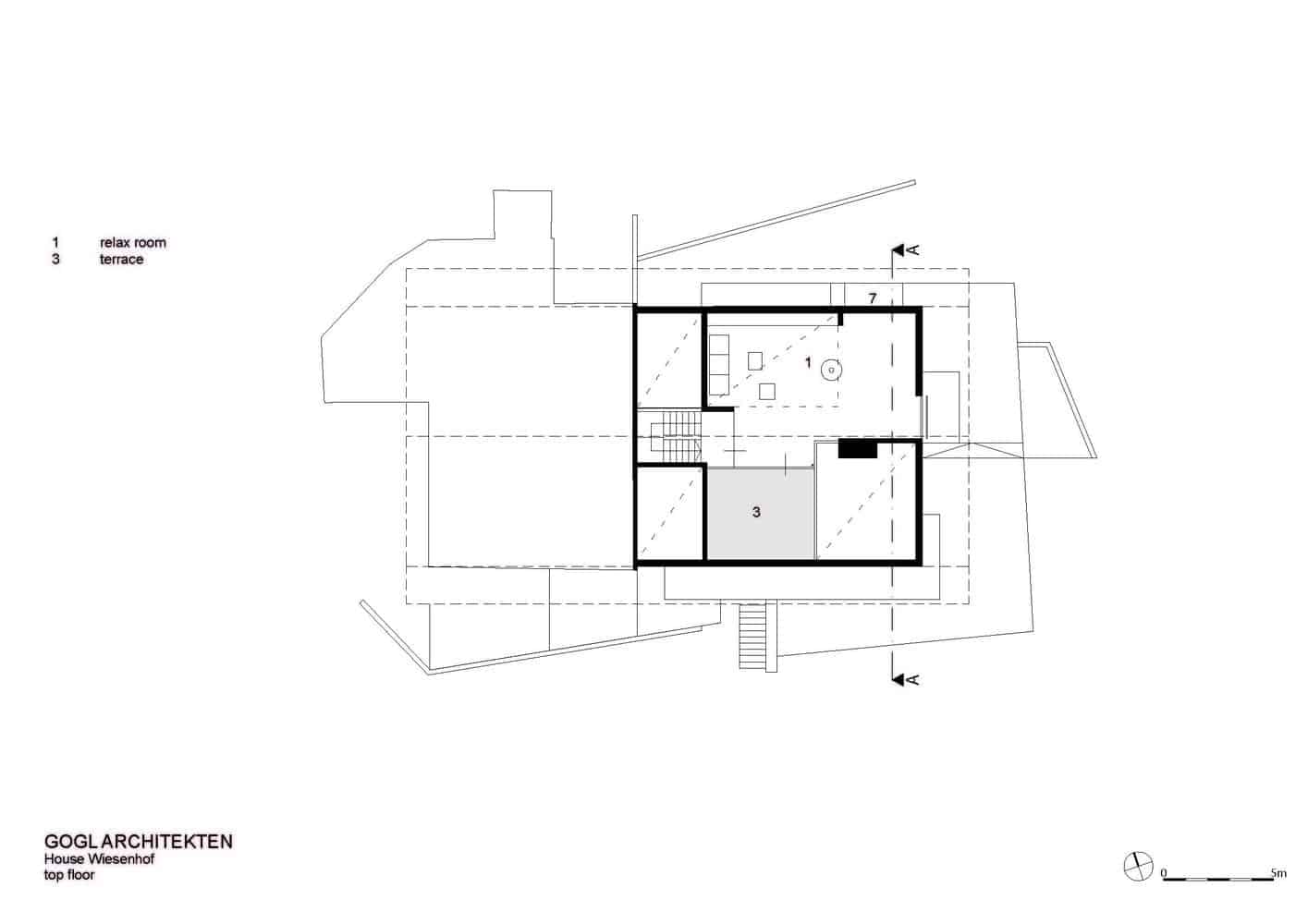 Zgodnie z założeniami projektowymi niedozwolona była przebudowa lub rozbudowa domu poza istniejącą kubaturę. To wiązało się z poważnymi ograniczeniami projektowymi Haus Wiesenhof. Poprzez podstawowe idee połączenia wewnętrznych pomieszczeń i zaprojektowanie formy otwartej i bogato zróżnicowanej struktury przestrzennej, architekt koncepcyjnie zrekompensował ograniczenia projektowe. Stworzył hojną przestrzeń życiową i rekreacyjną.