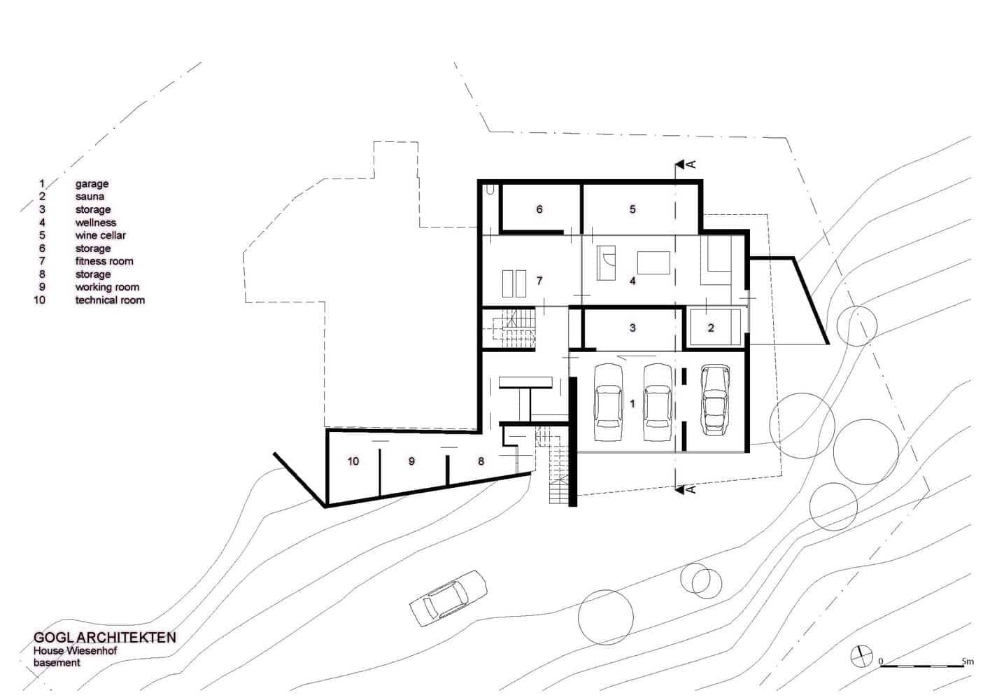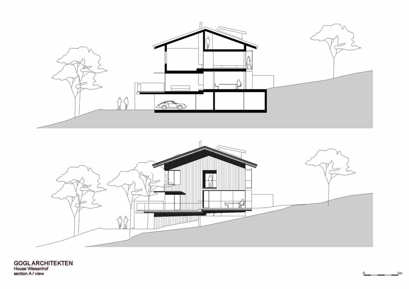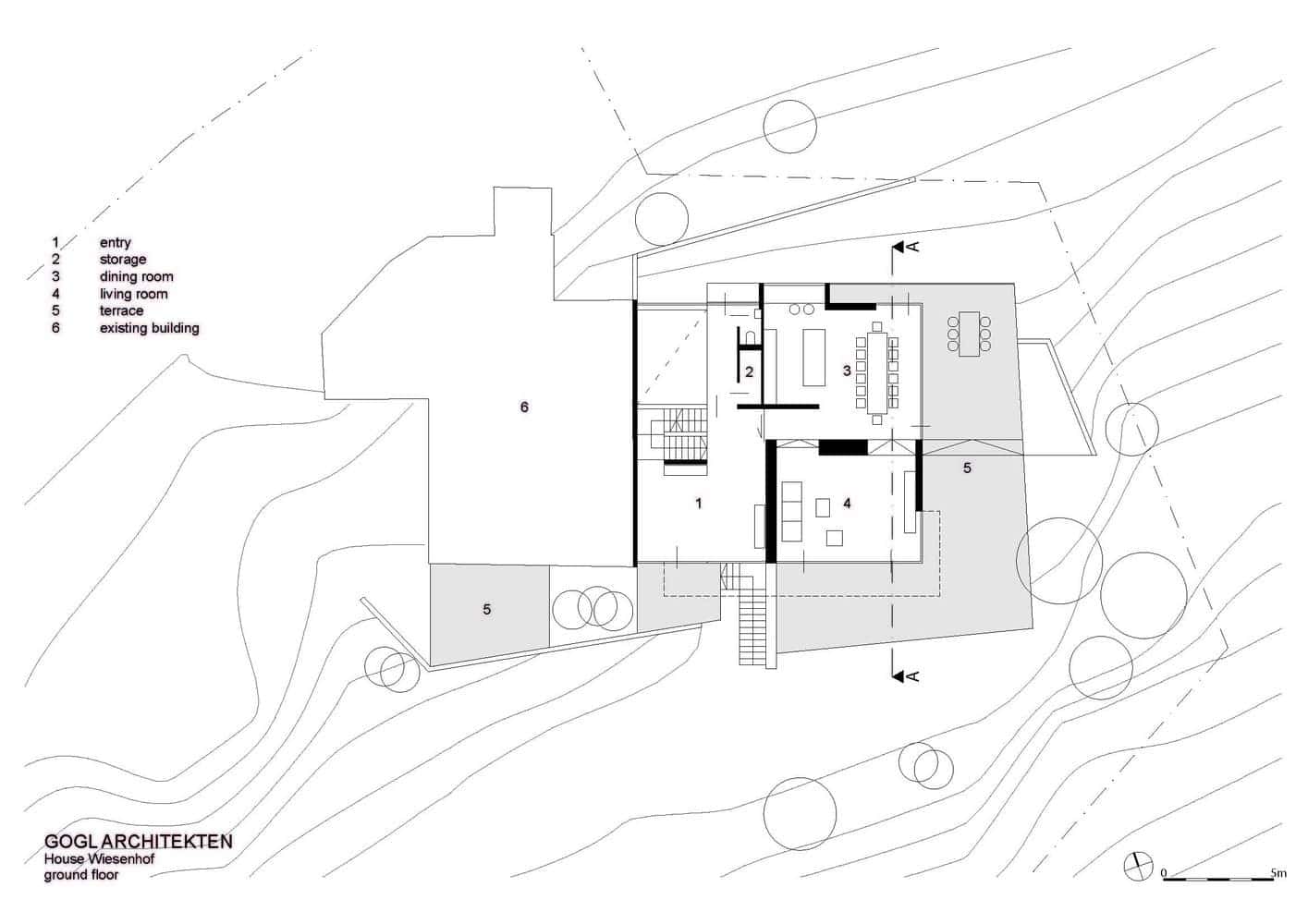 Zgodnie z założeniami projektowymi niedozwolona była przebudowa lub rozbudowa domu poza istniejącą kubaturę. To wiązało się z poważnymi ograniczeniami projektowymi Haus Wiesenhof. Poprzez podstawowe idee połączenia wewnętrznych pomieszczeń i zaprojektowanie formy otwartej i bogato zróżnicowanej struktury przestrzennej, architekt koncepcyjnie zrekompensował ograniczenia projektowe. Stworzył hojną przestrzeń życiową i rekreacyjną.