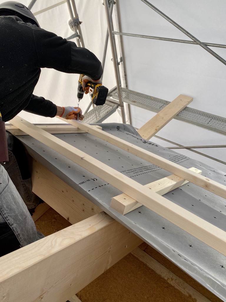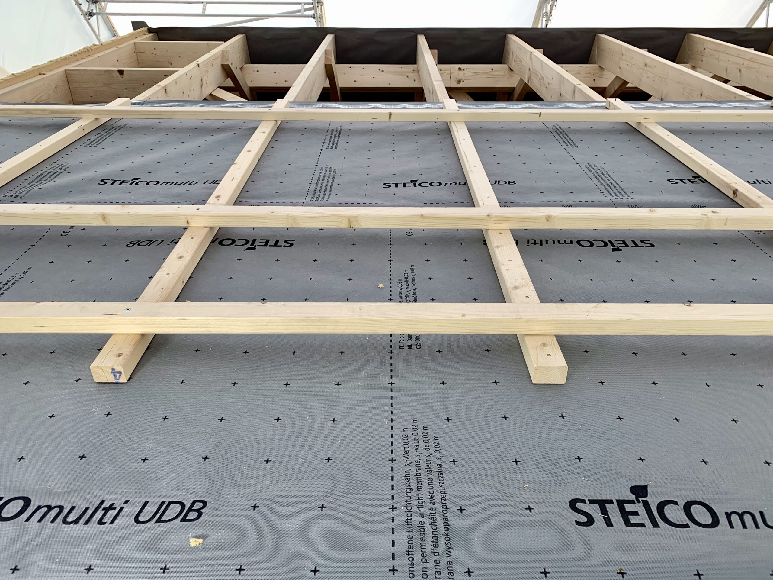 Zanim rozpoczniemy montaż kontrłat należy zabezpieczyć je od spodu taśma antyprzebiciową STEICO MULTI NAIL.