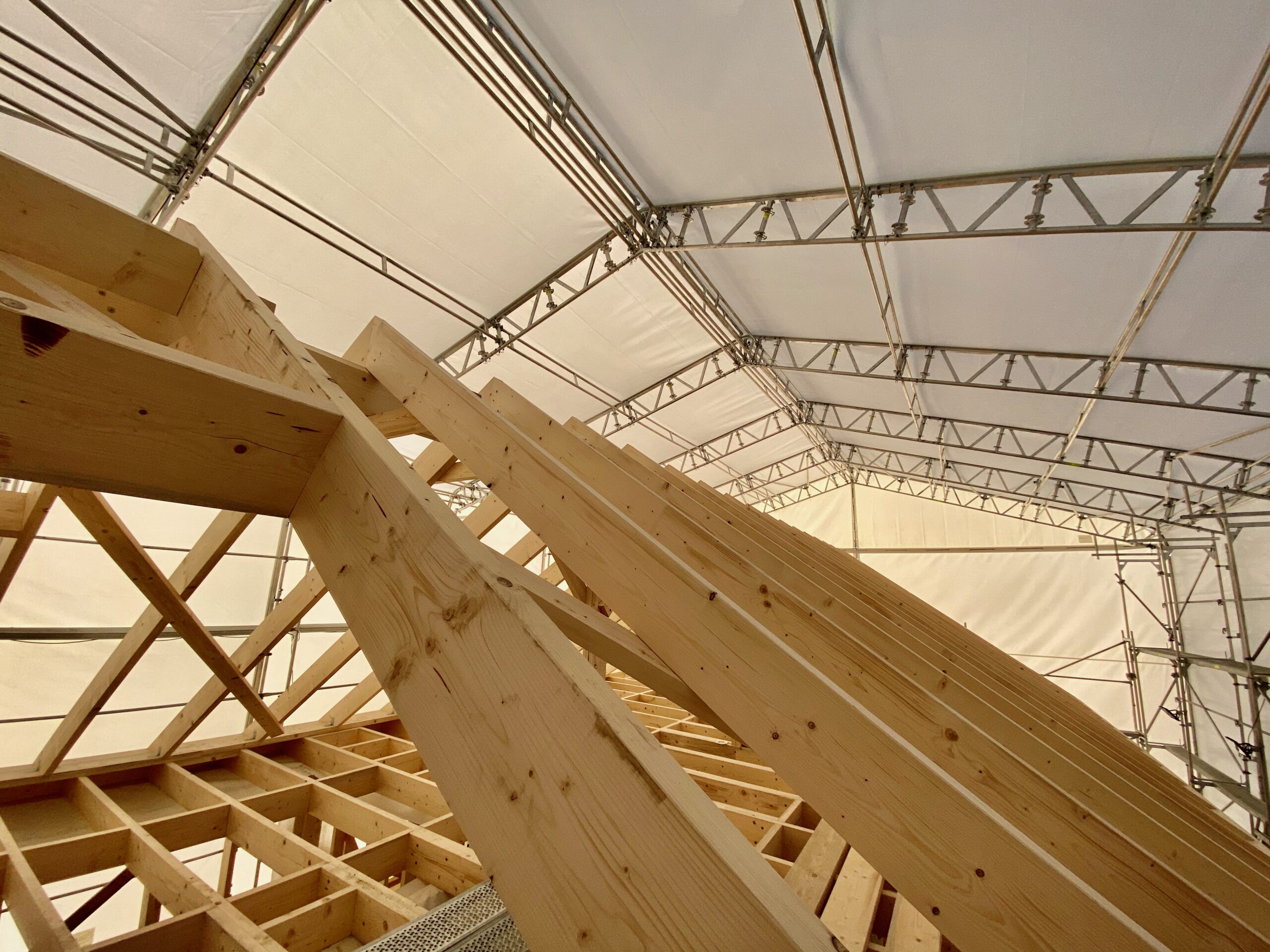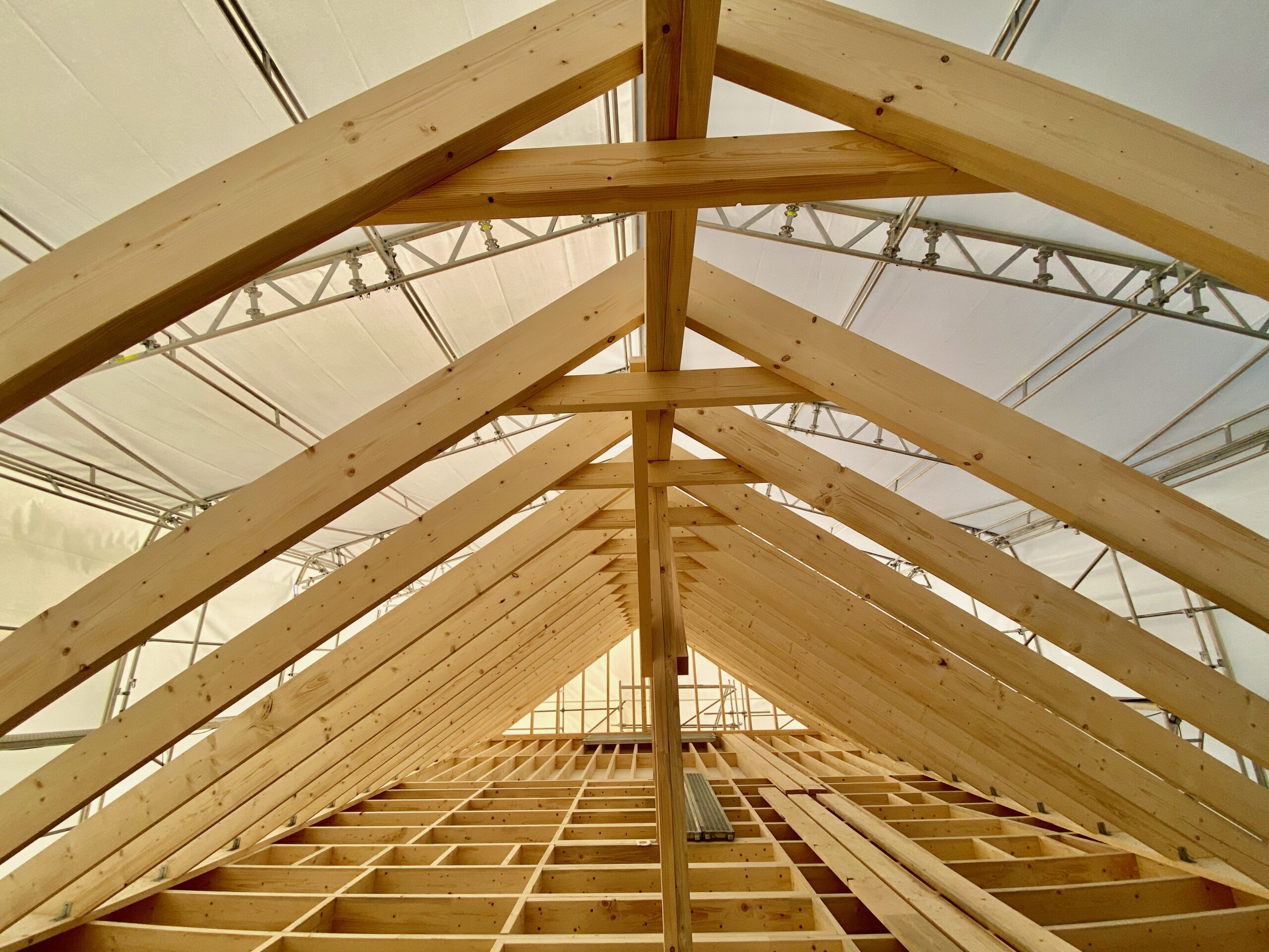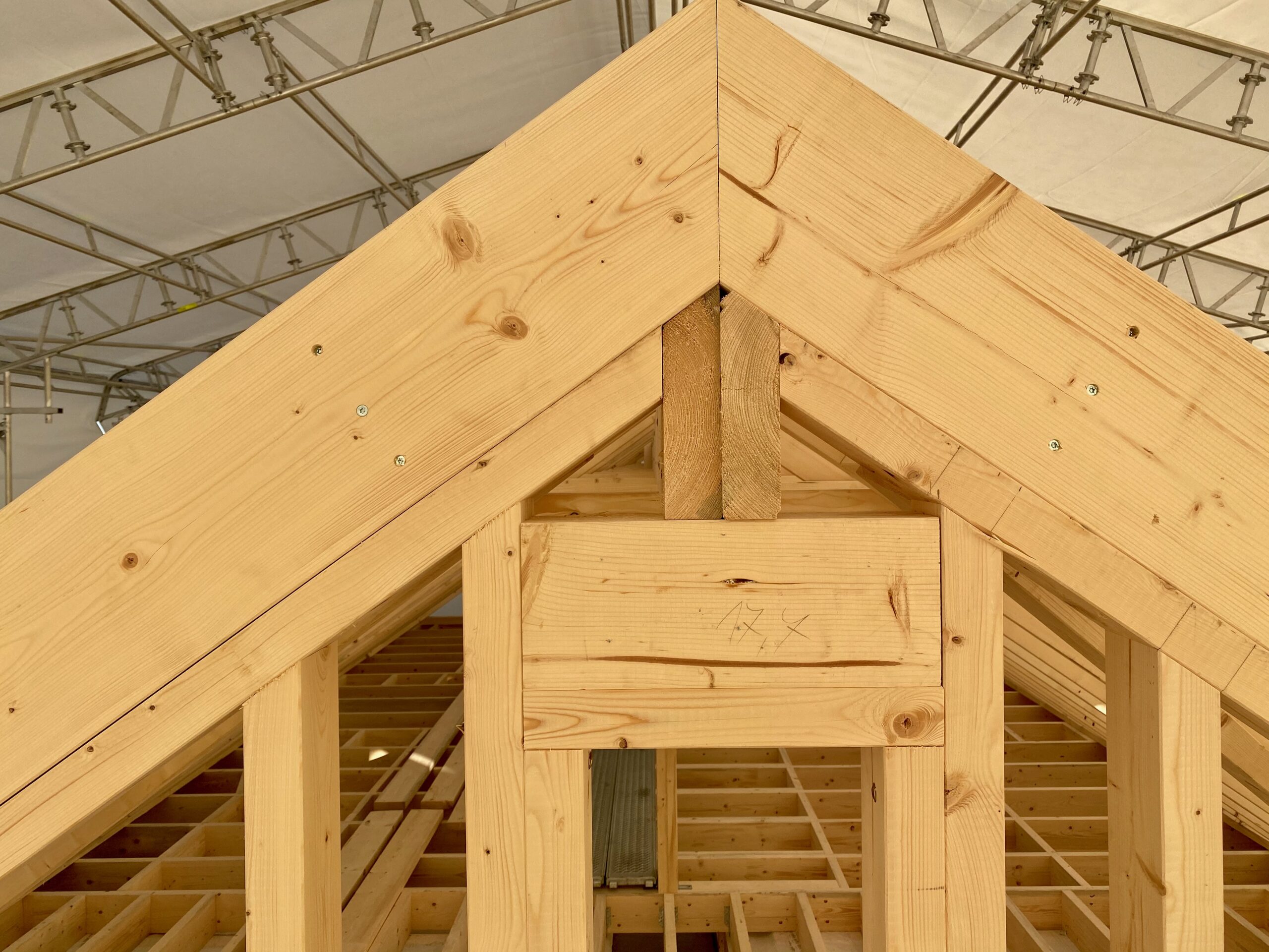 7. Jętki montujemy poniżej belki kalenicowej – one usztywnią nam połączenie pomiędzy krokwiami – to one pozwolą na odciążenie wkrętów mocujących krokwie do kalenicy. Jętki nie niwelują rozporu konstrukcji nośnej dachu – za niwelowanie rozporu odpowiadają złącza kotwiące, jaki i belki stropowe !
