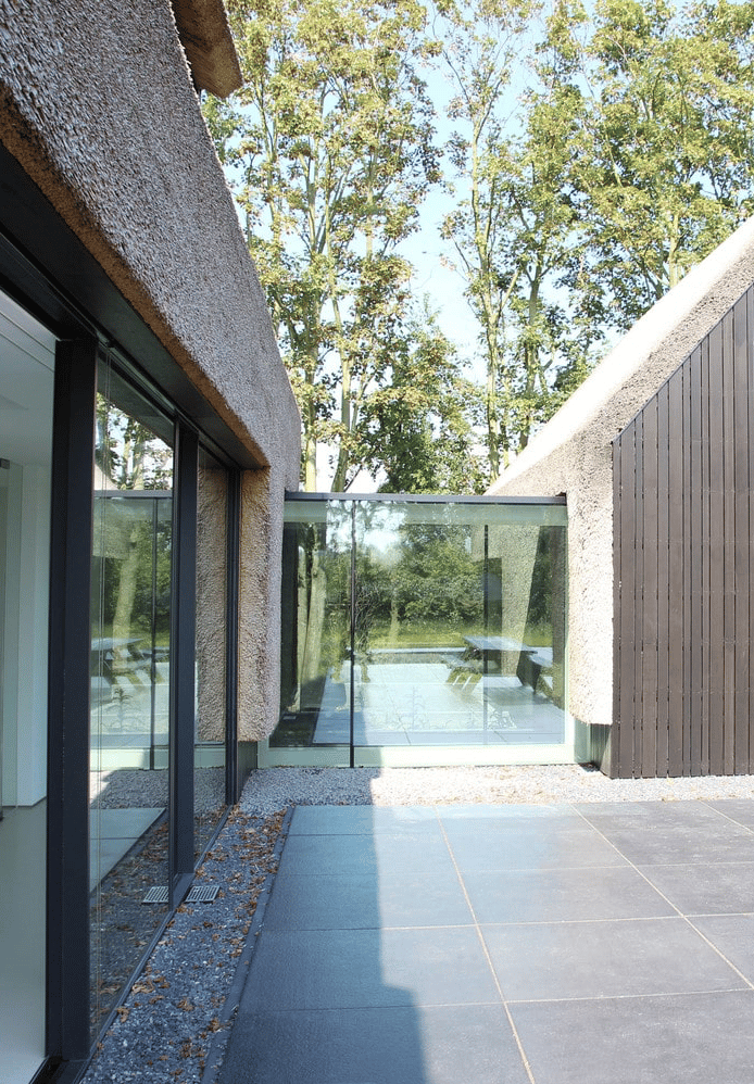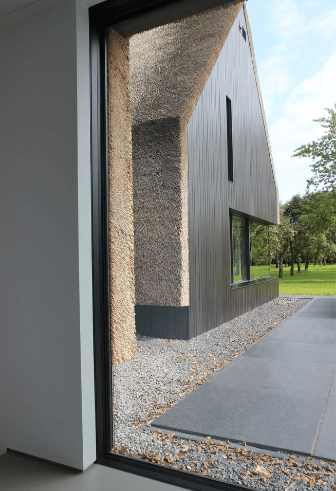 Projekt Outside-in’ opiera się na tradycyjnej, holenderskiej typologii „długiego domu”, która od wieków obecna w jest krajobrazie prowincji Zelandia. Wystarczy jednak przyjrzeć się nieco bliżej, by dostrzec, że charakter tego domu jest w rzeczywistości daleki od tradycyjnego. Współczesny wygląd zawdzięcza on specyficznemu zastosowaniu i połączeniu określonych materiałów.