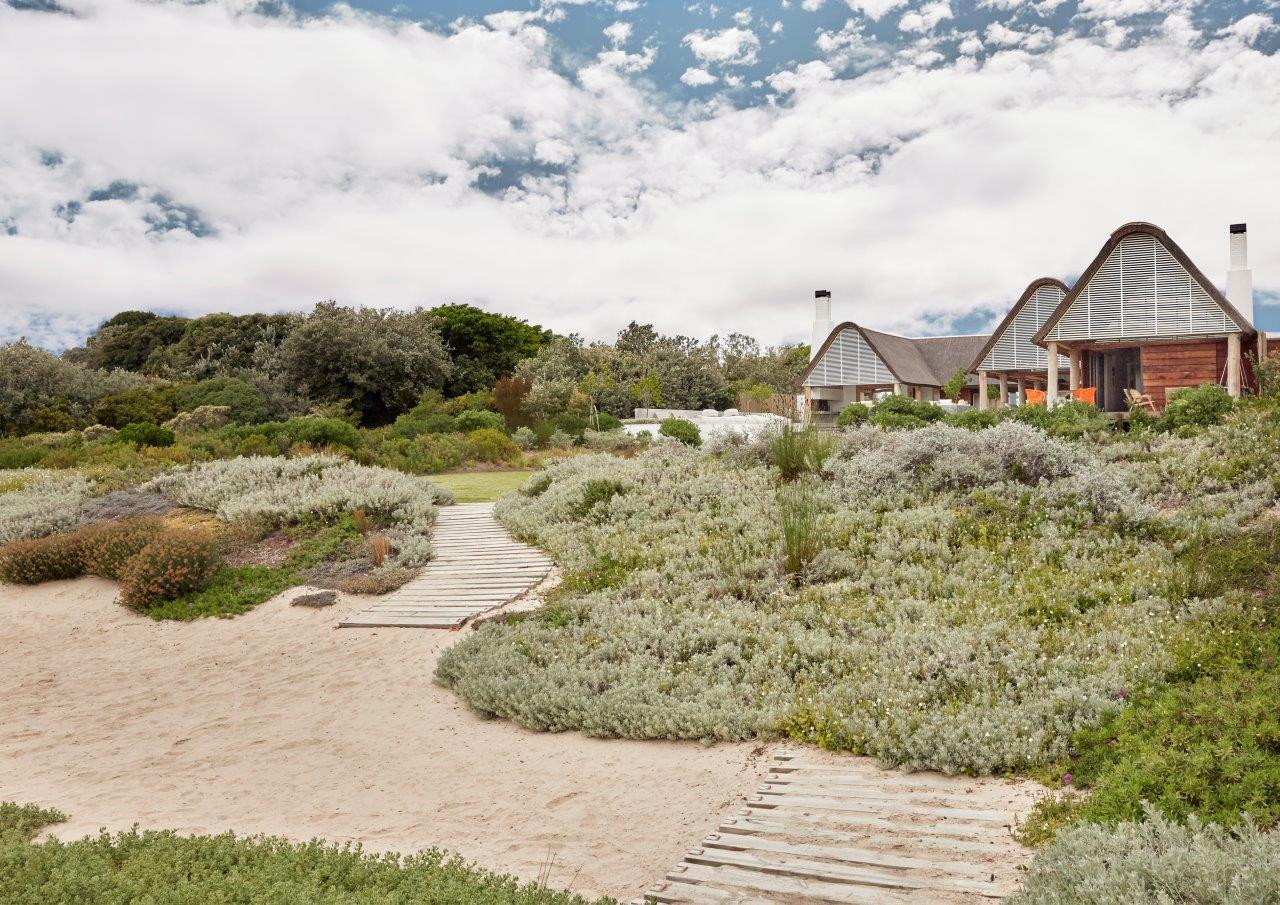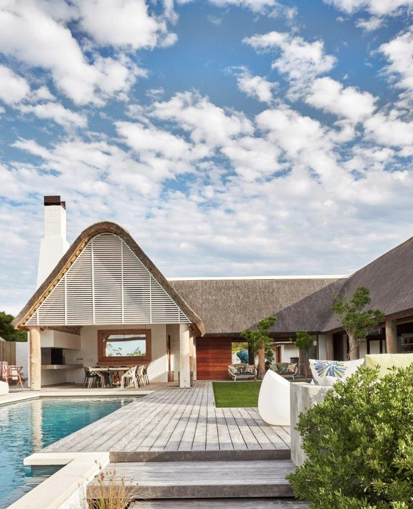 Dom znajduje się na tyłach działki, z żwirowym dziedzińcem dla pojazdów zamkniętym za niskimi murkami od strony ulicy. Dachy kryte strzechą i zakrzywione ściany są współczesne, ale przypominają tradycyjną architekturę Cape. Budynki są jednopiętrowe i zapewniają nienarzucającą się, kameralną skalę podejścia. Prostota i czystość formy tworzy strukturę, która wpływa na plan domu. Te proste, przypominające stodoły formy umieszczono w szeregu równoległych i prostopadłych konfiguracji, aby stworzyć „małe wiry”(lokalne określenie dziedzińców gospodarczych). Te z kolei zapewniają różne stopnie schronienia i prywatności oraz integrują przestrzeń wewnętrzną i zewnętrzną. Podczas gdy podłużne stodoły wysuwają wzrok w kierunku widoku. STODOŁY i dziedzińce między nimi zapewniają osłonięte przestrzenie zewnętrzne, niezależnie od kierunku wiatru.