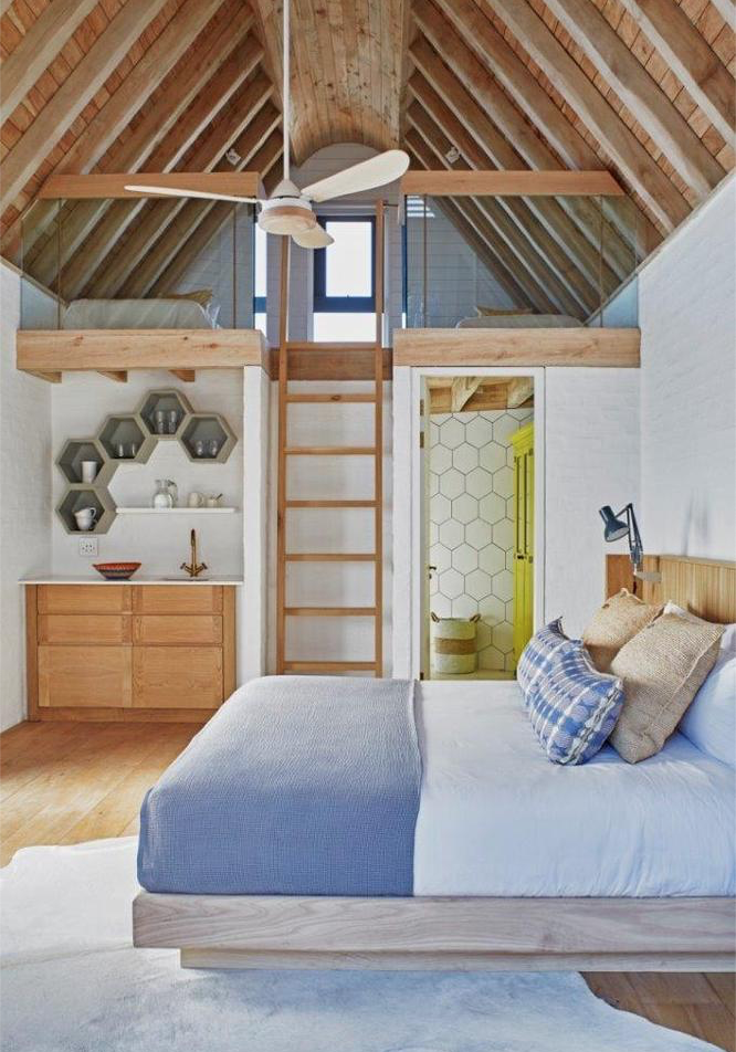 Sypialnie dziecięce otwierają się na dziedziniec wejściowy, zapewniając bezpieczne i osłonięte miejsce do zabawy. Dwie sypialnie posiadają poddasze do spania, podobnie jak pokój zabaw, a wraz z miejscami do spania w sypialniach zapewniają gościom dodatkową przestrzeń do spania.