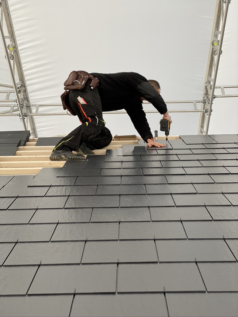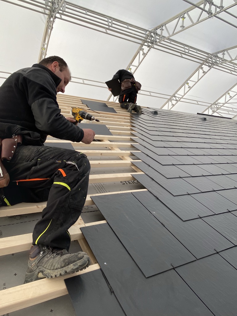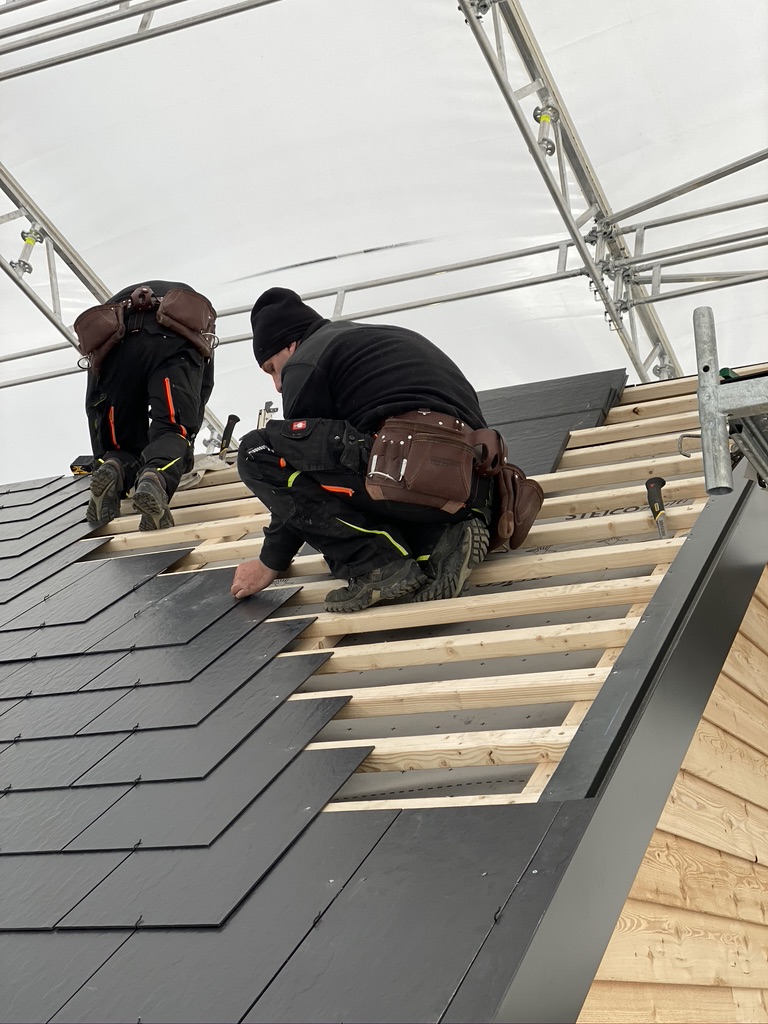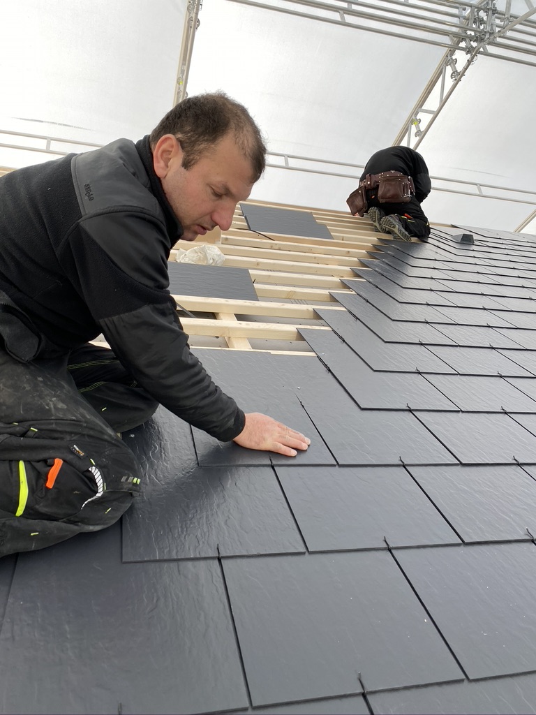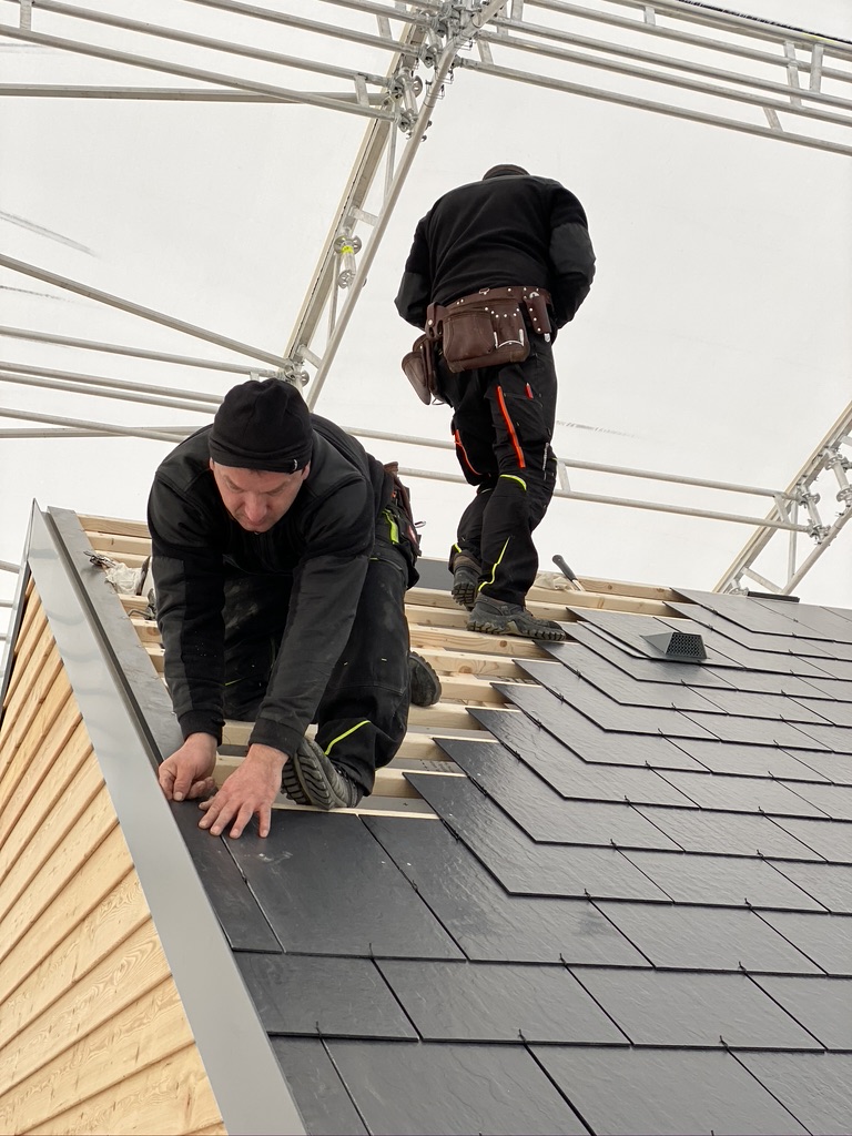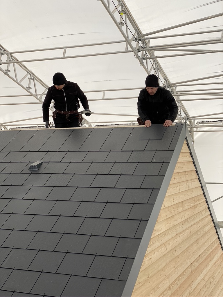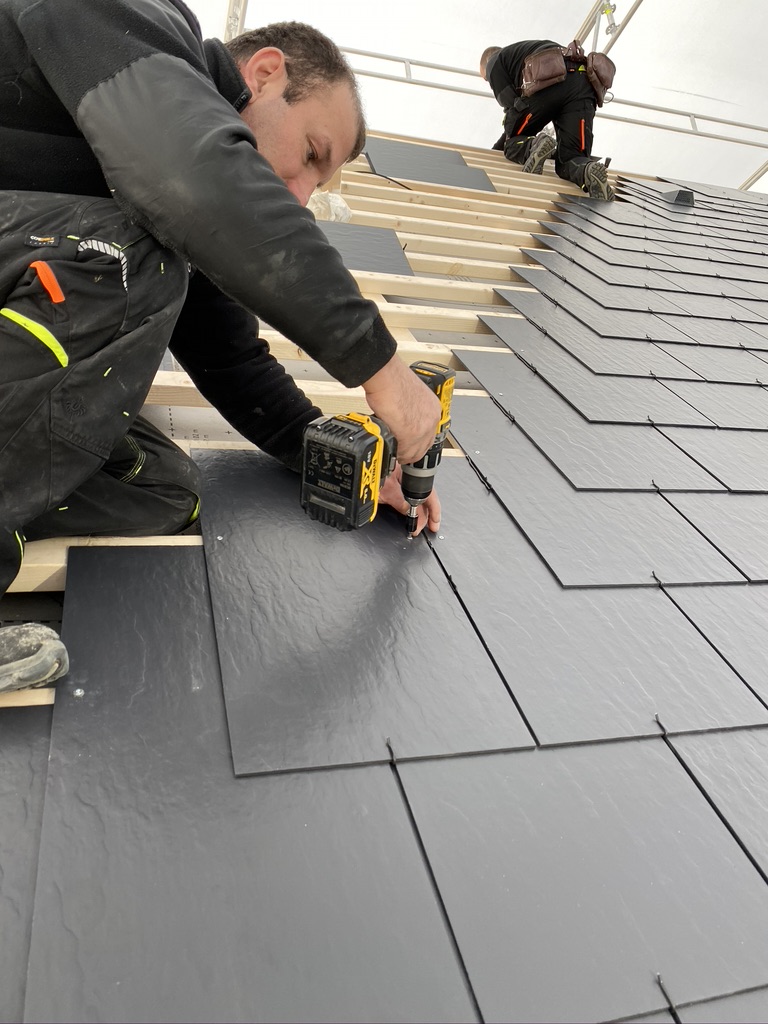 Pisaliśmy poprzednim razem, że montaż płytek jest łatwy i można wykonać go przy pomocy prostych narzędzi – i to się zgadza. Jednak musimy jedno przyznać – jesteśmy pod pełnym wrażeniem pracy naszych fachowców, którzy całość wykonali wprost idealnie. Dzięki nim i stałej współpracy z producentem płytek włóknocementowych Cedral nasza nowoczesna STODOŁA ma perfekcyjnie wykonany dach.