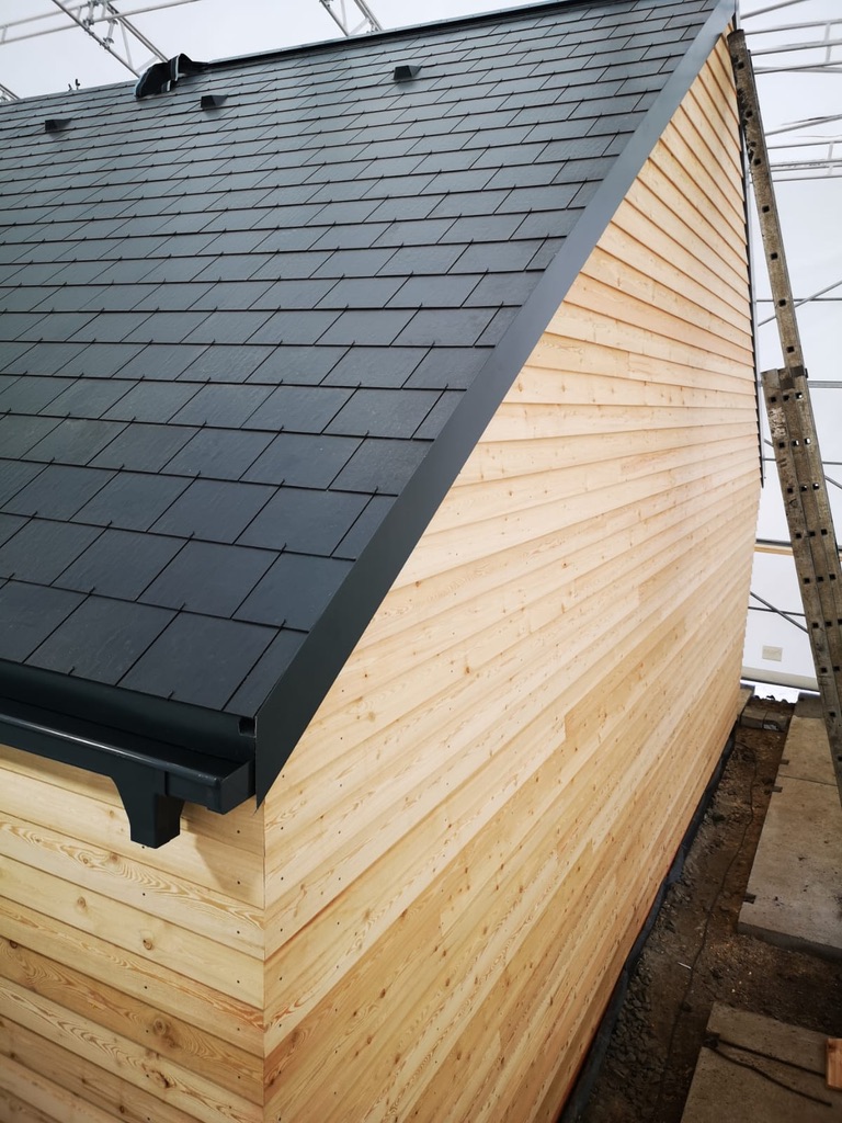 Nasz dach jest dwuspadowy. Nigdy nie mieliśmy najmniejszych wątpliwości jak będzie wyglądał. Jednak rodzajów dachów jest bardzo wiele: płaski, jednospadowy, czterospadowy, wielospadowy, naczółkowy i mansardowy. Jeżeli dach ma bardziej skomplikowany kształt powinno się zwrócić uwagę na zastosowany materiał i wybrać na przykład mniejszy format, aby zminimalizować odpad materiału – to bardzo ważne, aby w świecie, w którym produkujemy tony śmieci, starać się dokonywać mądrych wyborów i minimalizować negatywny wpływ na otoczenie. Płytki Cedral dostępne są w różnych formatach, mogą mieć kształt kwadratu o boku 30, 40 cm lub prostokąta o wymiarach 20 x 40 cm, 30 x 60 cm i 40 x 80 cm.