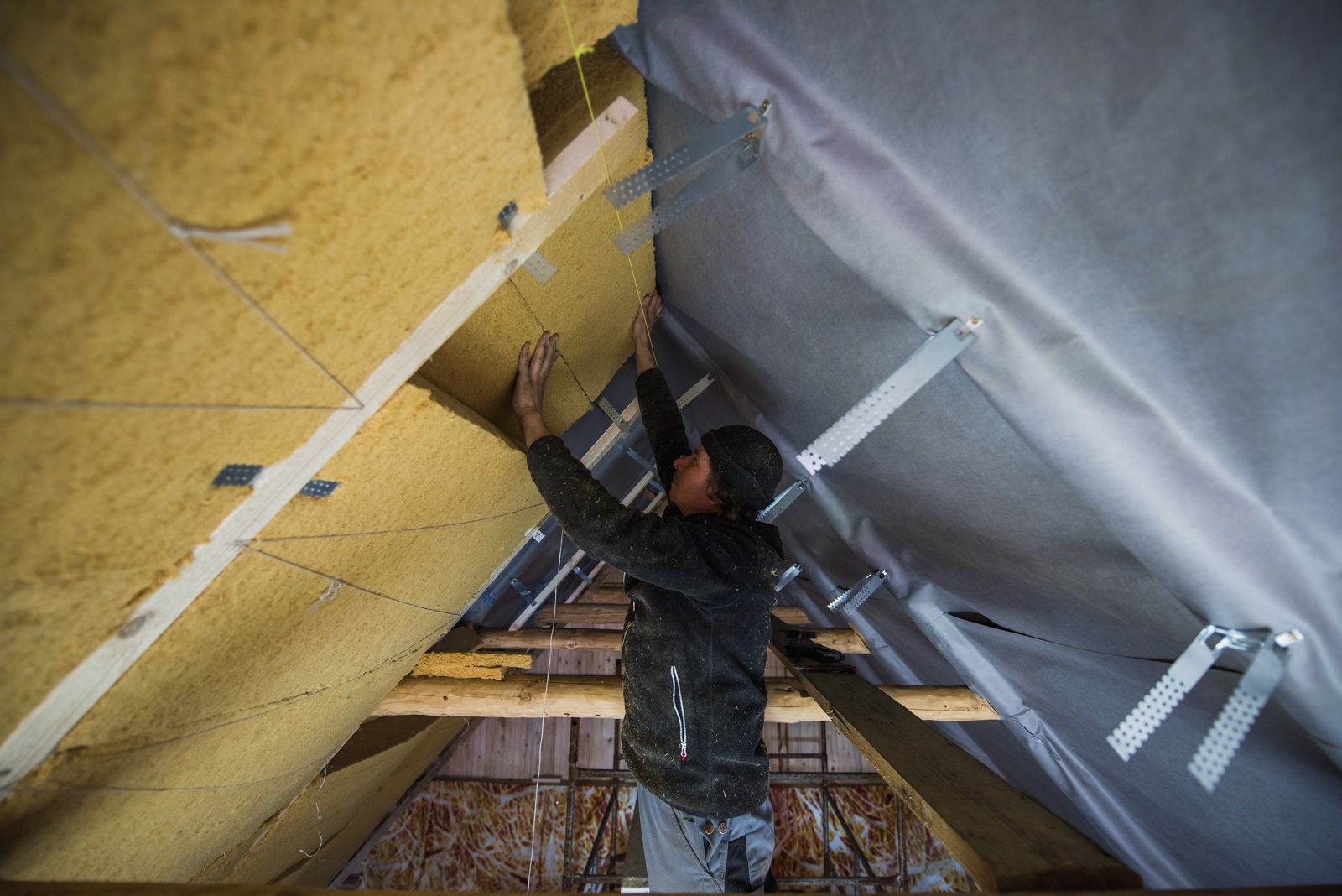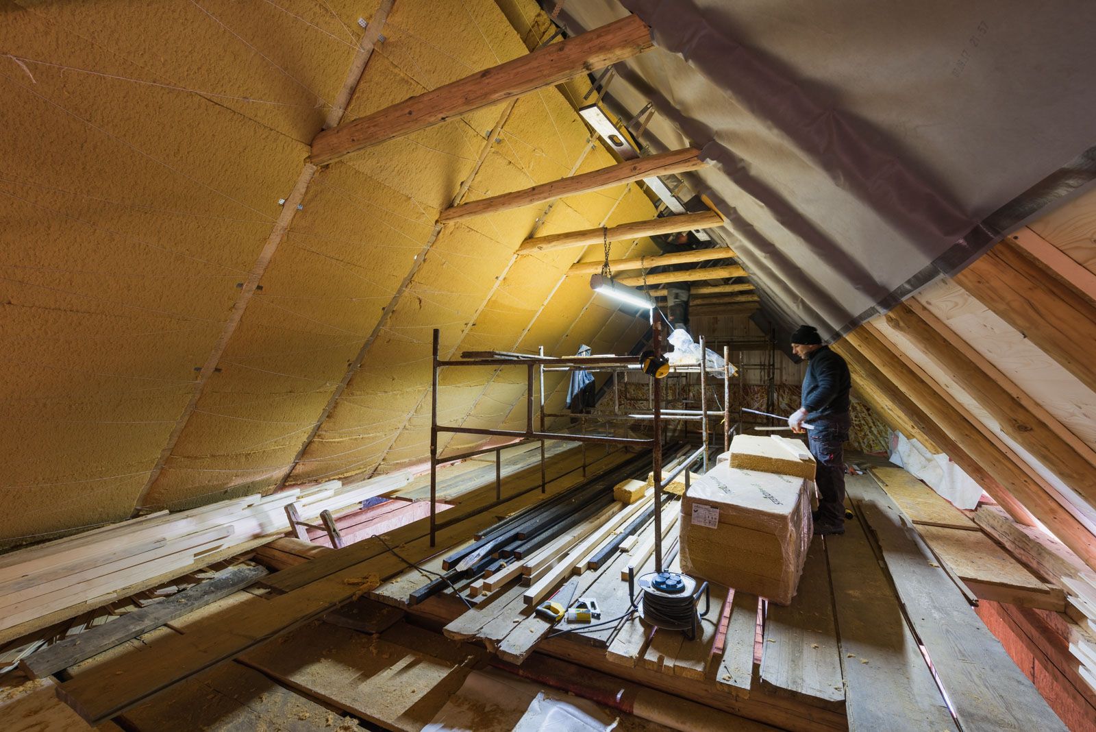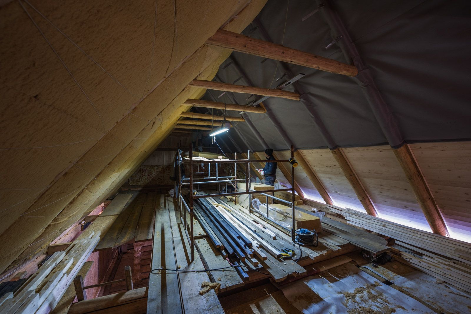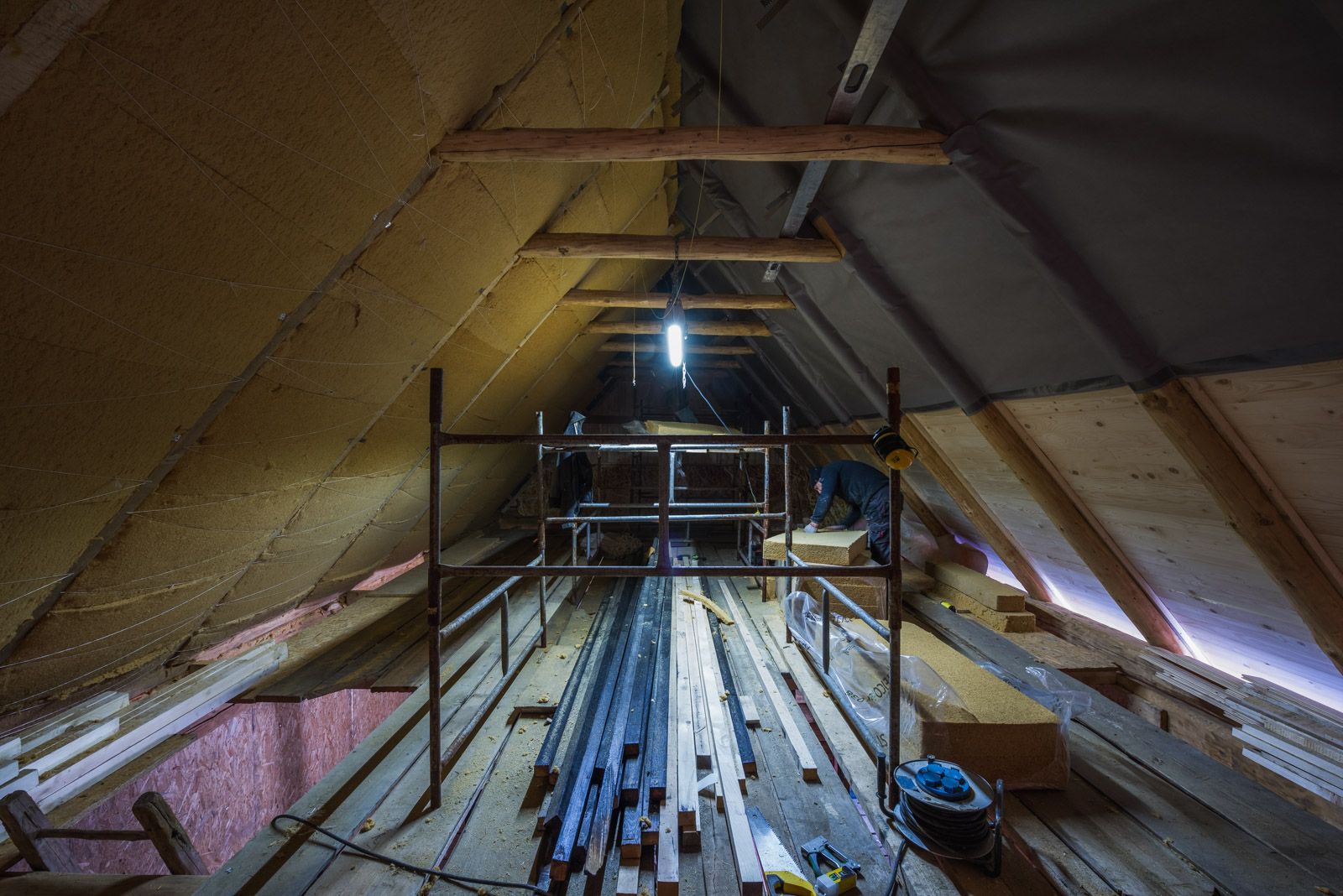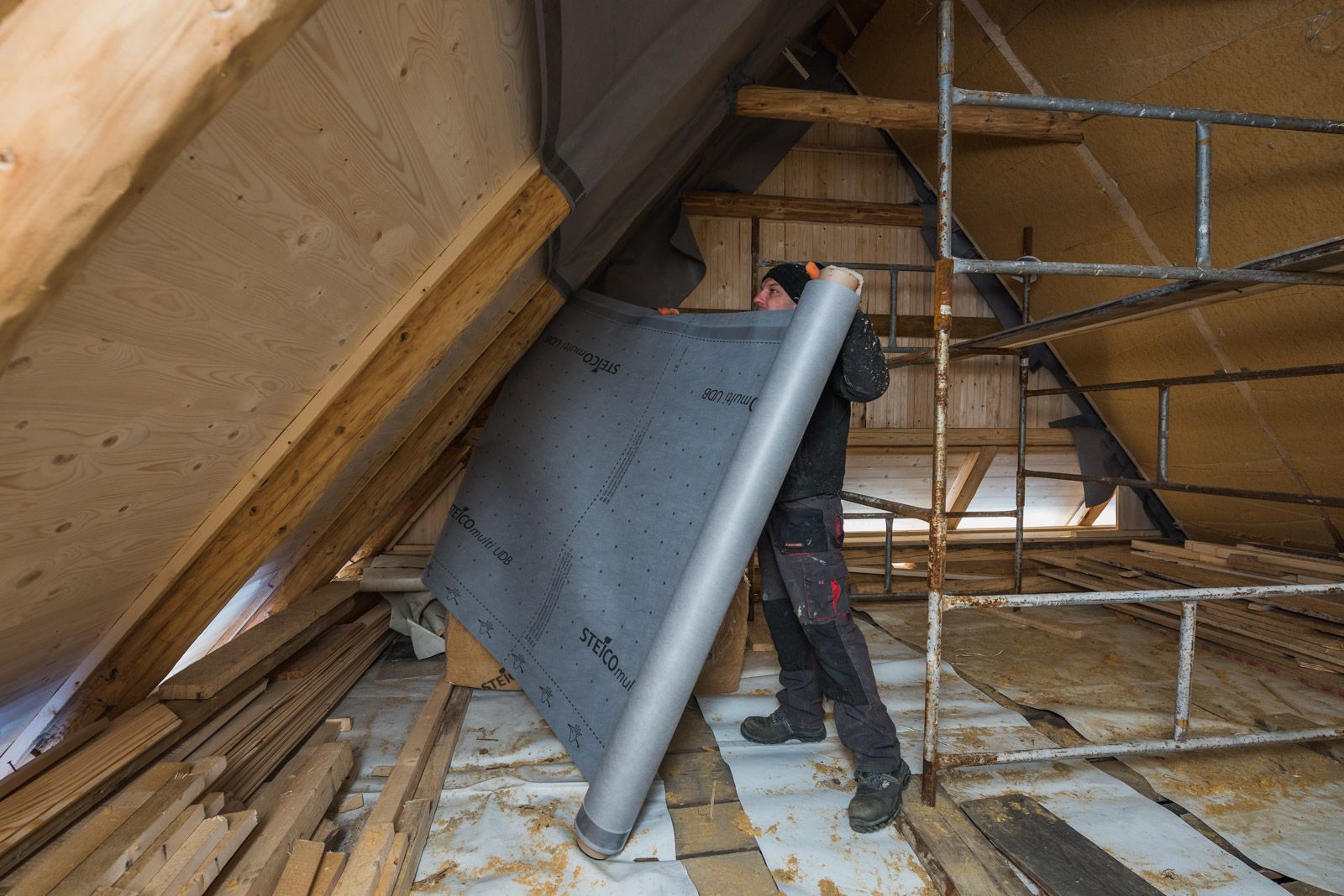 I etap – izolacja od wewnątrz z wykorzystaniem sprężystej maty STEICOflex 036 oraz membrany STEICOmulti membra 5.