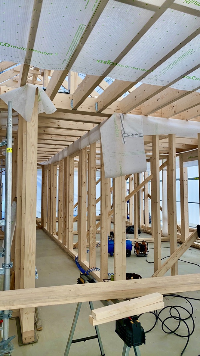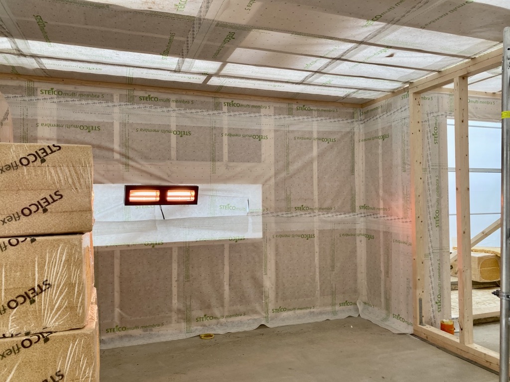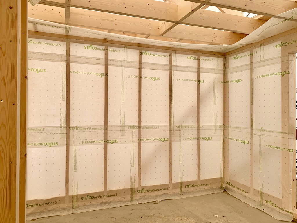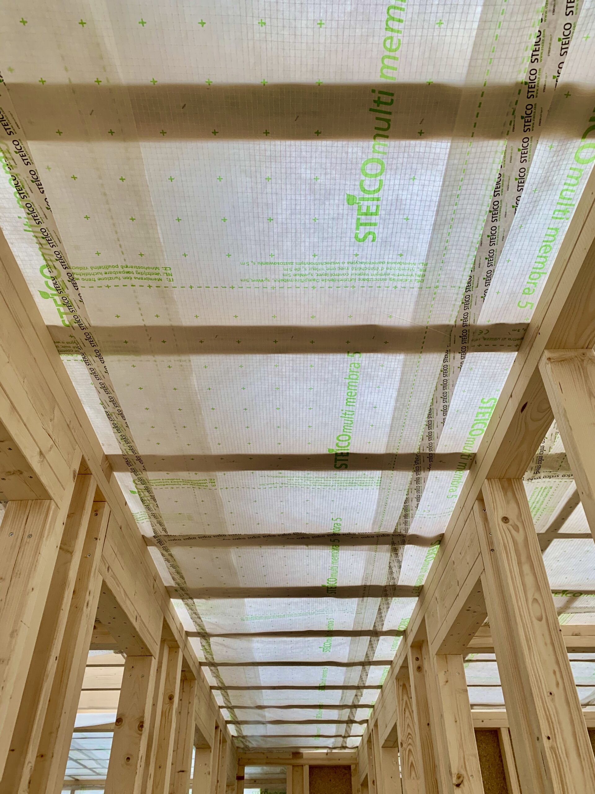 Przed przystąpieniem do montażu płyt konstrukcyjnych MFP należy bezwzględnie skontrolować ciągłość membrany paroizolacyjnej na ścianach zewnętrznych, wszelkie otwory, nadszarpnięcia membrany należy bezwzględnie skleić z użyciem taśm systemowych służących do klejenia membran paroizolacyjnych.