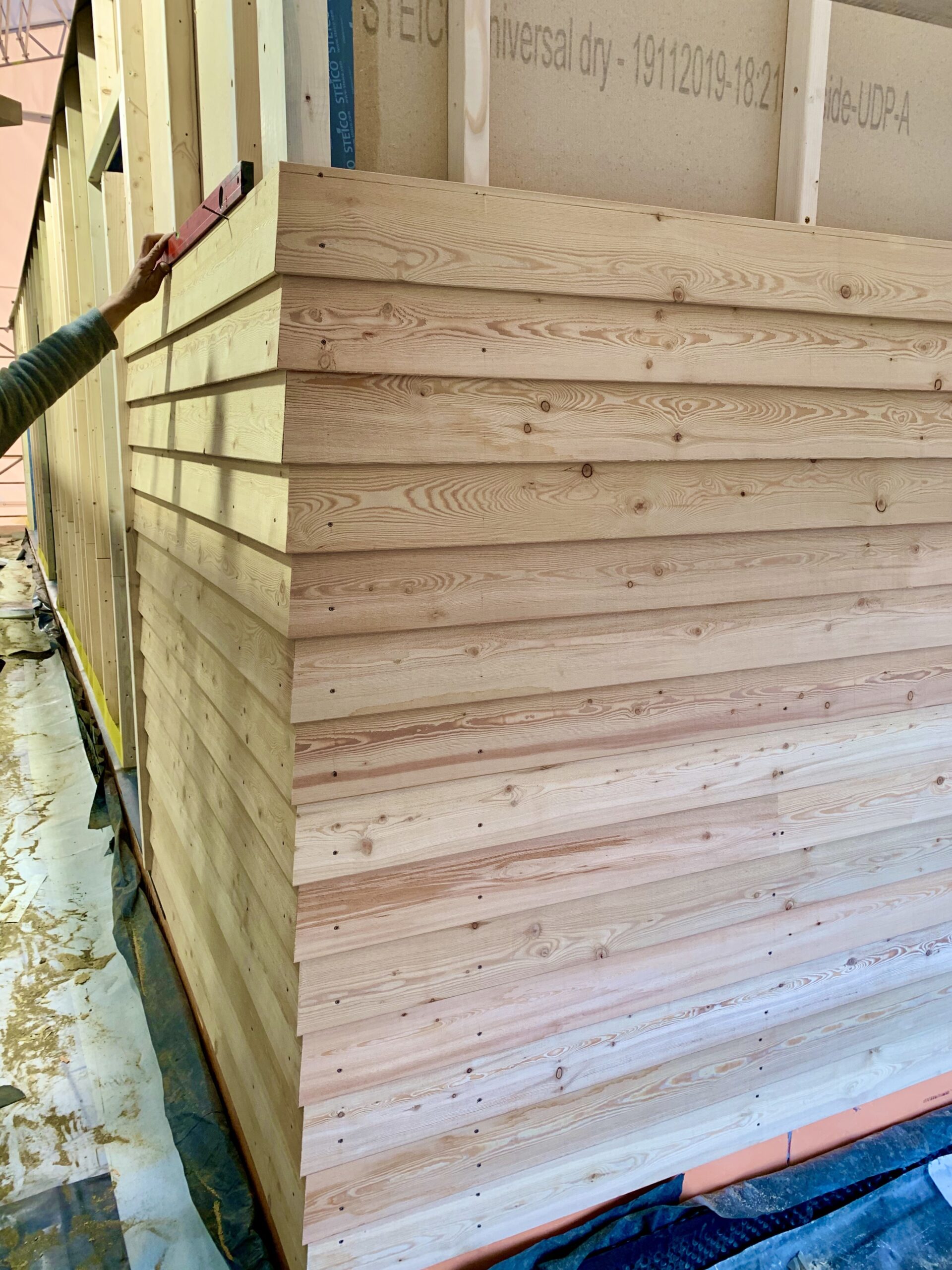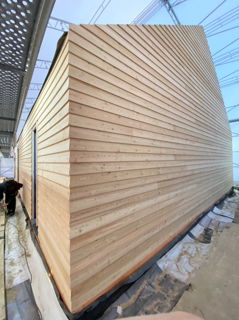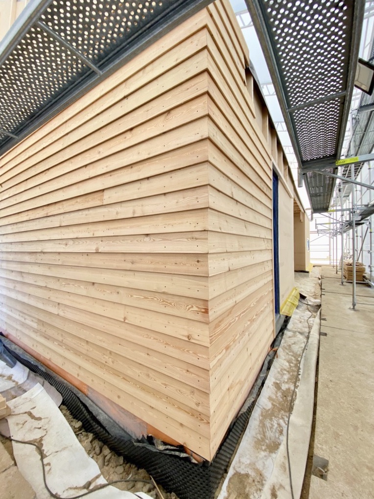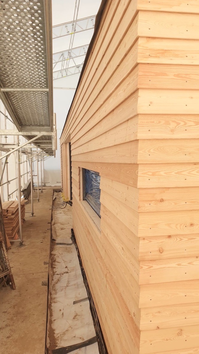 Modrzew syberyjski jest twardszy od modrzewia europejskiego – z racji bardzo krótkiego, zimnego lata i długiej, srogiej zimy jego wzrost jest powolny, co znacząco wpływa na zwiększenie jego trwałości i odporności. Niskie przyrosty roczne (a co za tym idzie gęstsze usłojenie), duża procentowo część drewna późnego (czyli twardszego) powoduje, że modrzew syberyjski jest długoletni i trwały. Wykorzystując naturalne cechy tego drewna postanowiliśmy go nie szlifować, nie malować i nie impregnować. Będzie sie naturalnie starzał. I to jest piękne w naturalnym i ekologicznym podejsciu. Zastanówmy się ile energii, chemii i toksyn mniej, wyemitowaliśmy do środowiska?!