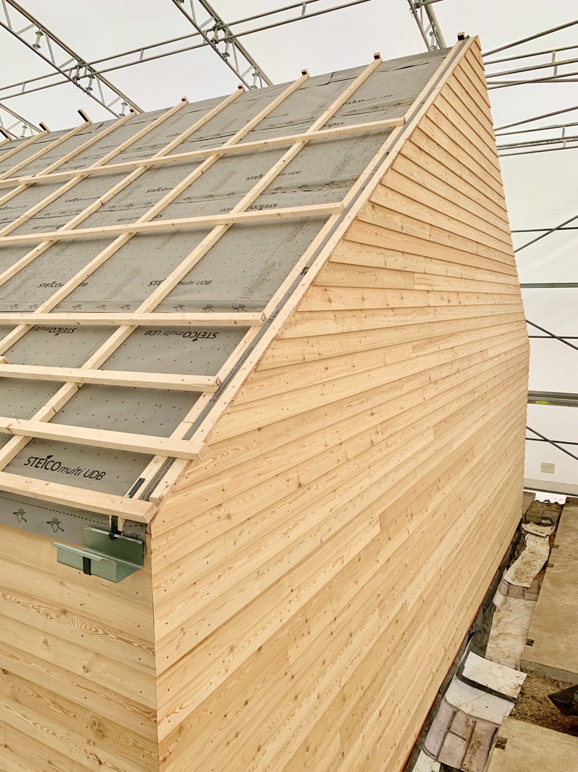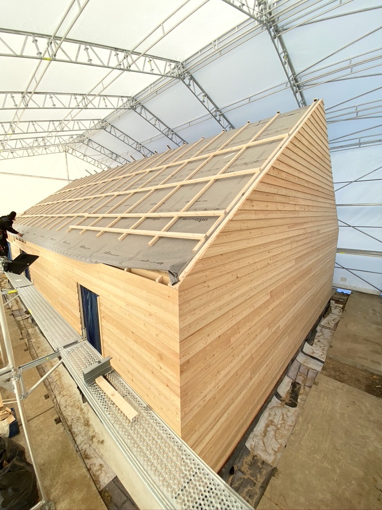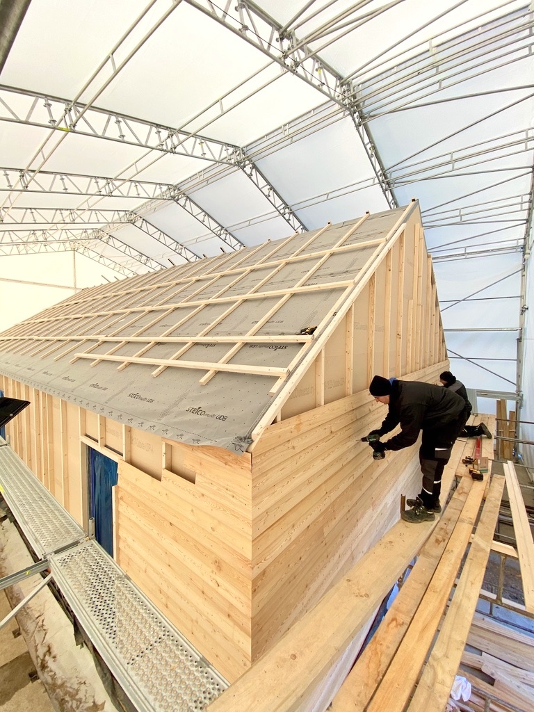 Modrzew syberyjski jest twardszy od modrzewia europejskiego – z racji bardzo krótkiego, zimnego lata i długiej, srogiej zimy jego wzrost jest powolny, co znacząco wpływa na zwiększenie jego trwałości i odporności. Niskie przyrosty roczne (a co za tym idzie gęstsze usłojenie), duża procentowo część drewna późnego (czyli twardszego) powoduje, że modrzew syberyjski jest długoletni i trwały. Wykorzystując naturalne cechy tego drewna postanowiliśmy go nie szlifować, nie malować i nie impregnować. Będzie sie naturalnie starzał. I to jest piękne w naturalnym i ekologicznym podejsciu. Zastanówmy się ile energii, chemii i toksyn mniej, wyemitowaliśmy do środowiska?!