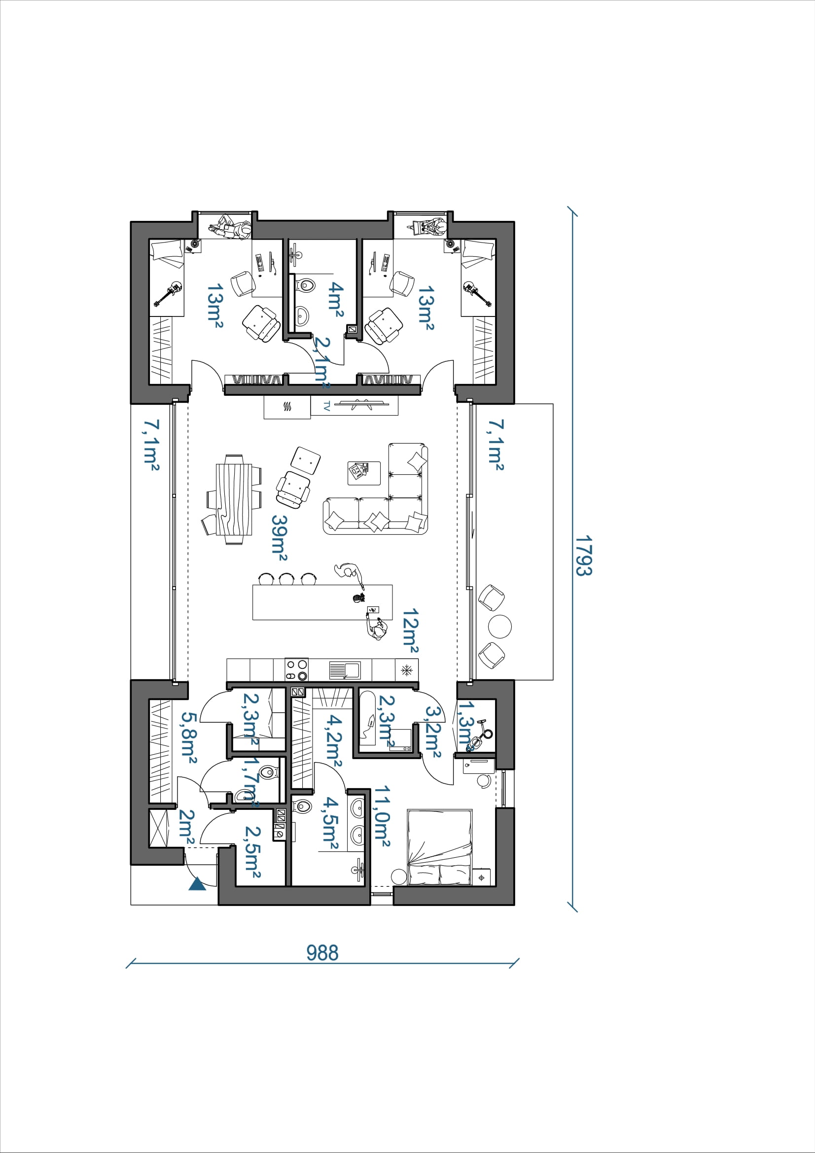 • Powierzchnia użytkowa: 121,40 m2