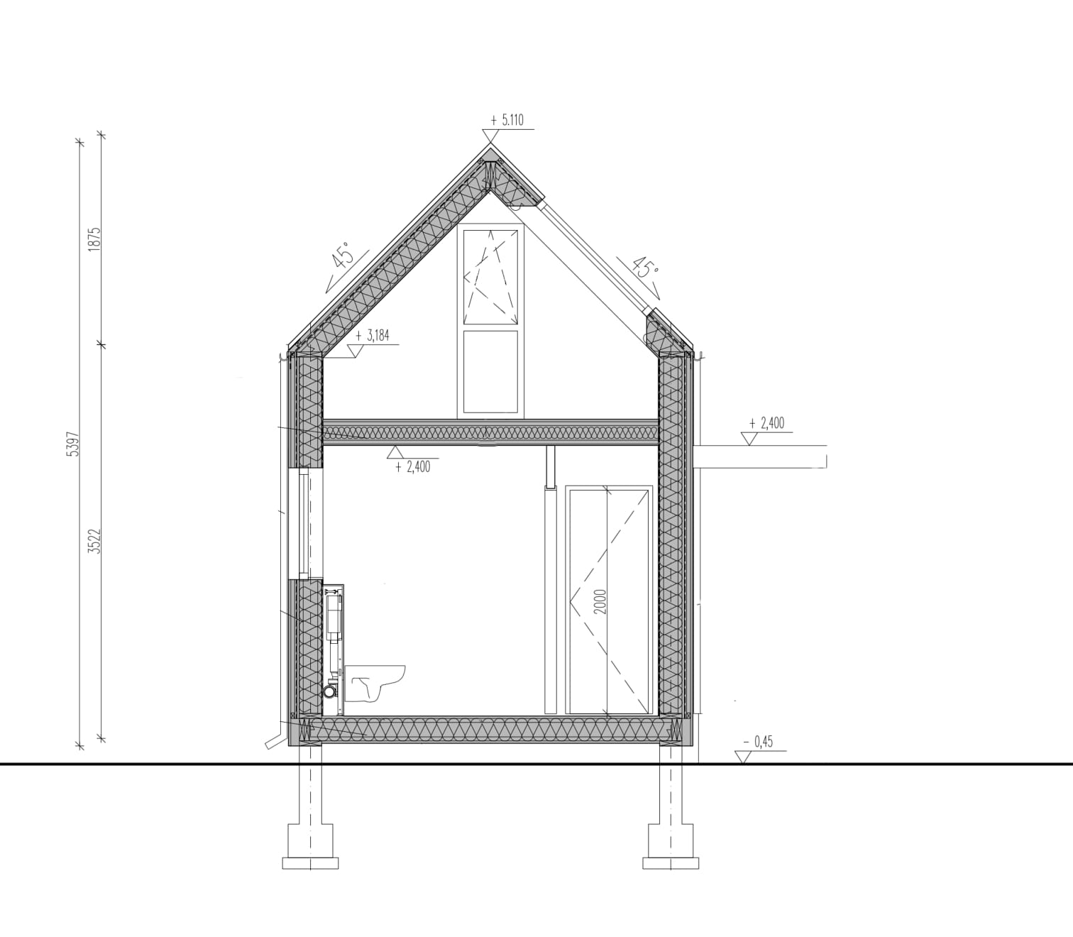 • Kąt nachylenia dachów 45o