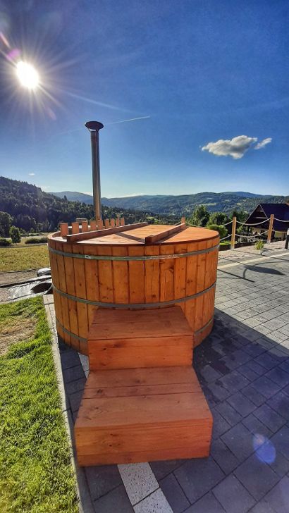 Osada Mosorny Groń to miejsce nastawione na relaks. Przez przesuwne drzwi wyjdziesz na taras, na którym znajdują się ruska bania, meble ogrodowe oraz leżaki. Każdy z domów posiada 3 sypialnie dwuosobowe i 1 sypialnię 4-osobową. Dodatkowo w salonie znajduje się rozkładana sofa z funkcją spania. W każdym z domków znajdują się również dwie łazienki. W domkach zamontowana jest klimatyzacja, kominek oraz telewizor 55-cio calowy. Jednym słowem Osada Mosorny Groń zapewnia wszystko co niezbędne do komfortowego spędzenia czasu w naszej osadzie. Bliskość wyciągów narciarskich, tras biegowych i rowerowych oraz szlaków górskich sprawia, że w Osadzie Mosorny Groń przez cały rok nie sposób się nudzić.